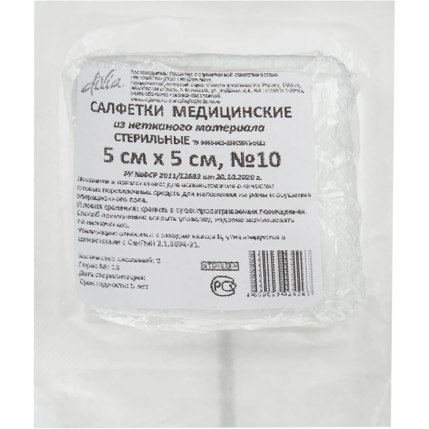 Салфетки нетканые, стер, 5х5см, №10, пл.40, 8 слож., 10шт/уп ШК34263
