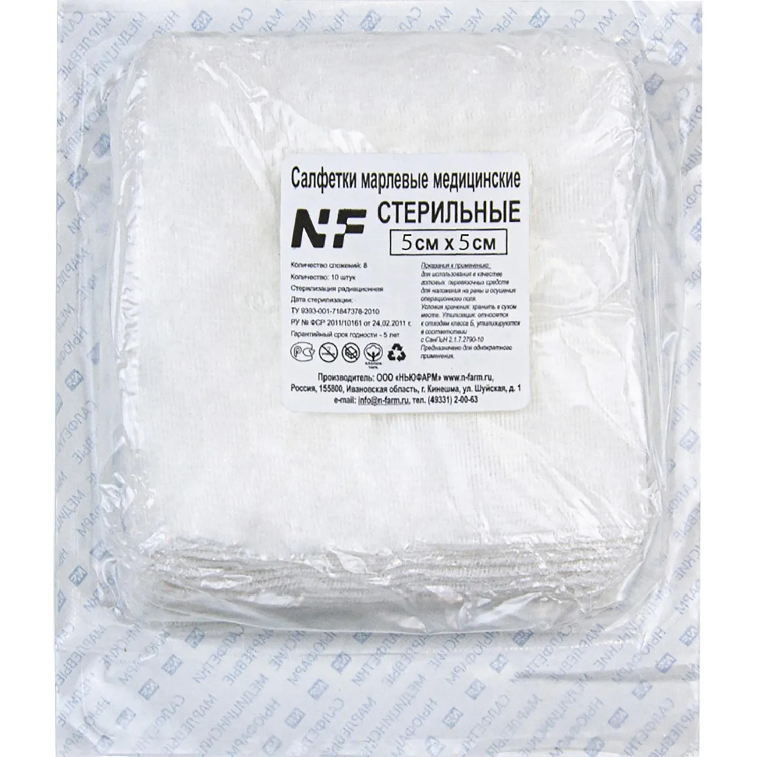 Салфетки стер 5х5см 8сл 17нит пл.32г инд/уп 10шт/уп Ньюфарм ШК80926