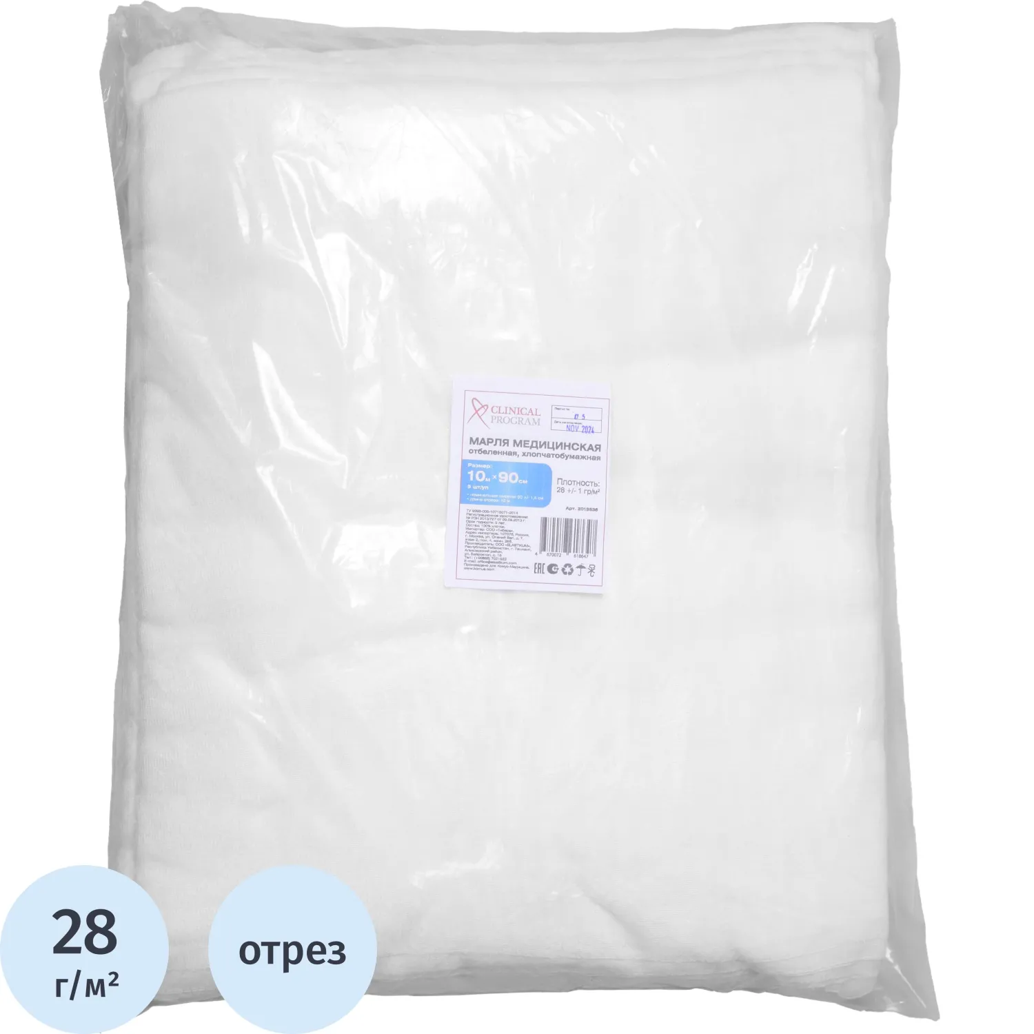 Марля медицинская отбеленная 5мx90см, отрез, пл.36г, 15шт/уп