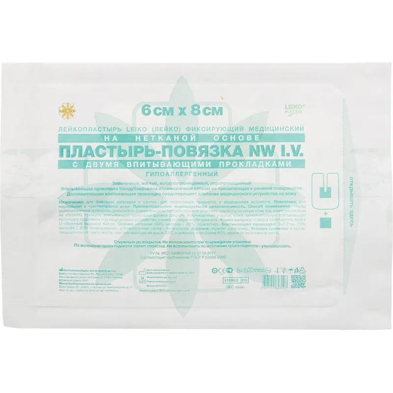 Пластырь-повязка IV д/катетеров 2 сорб подуш-ки 6x8см