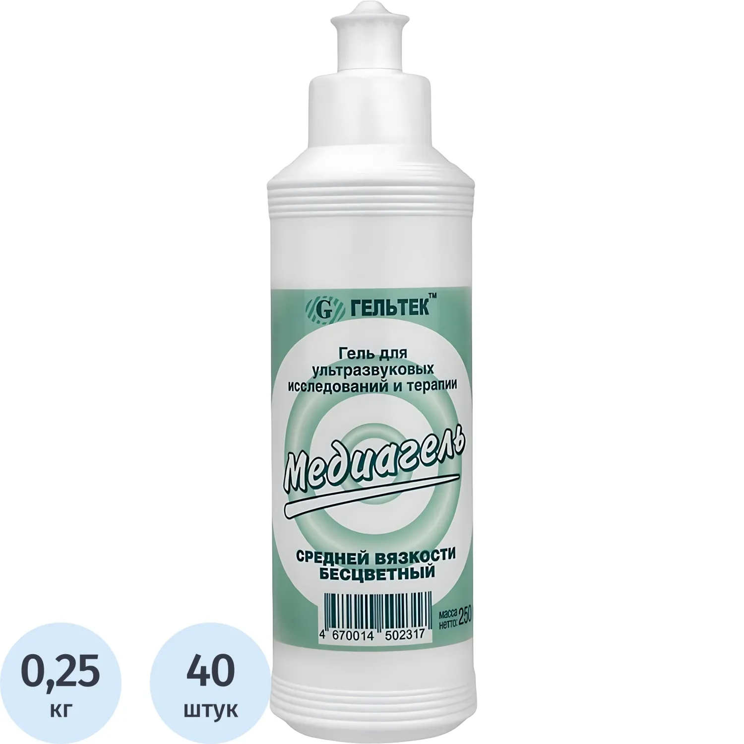 Гель для УЗИ МЕДИАГЕЛЬ 250г/бут. средней вязкости (цв.) 40 шт/уп