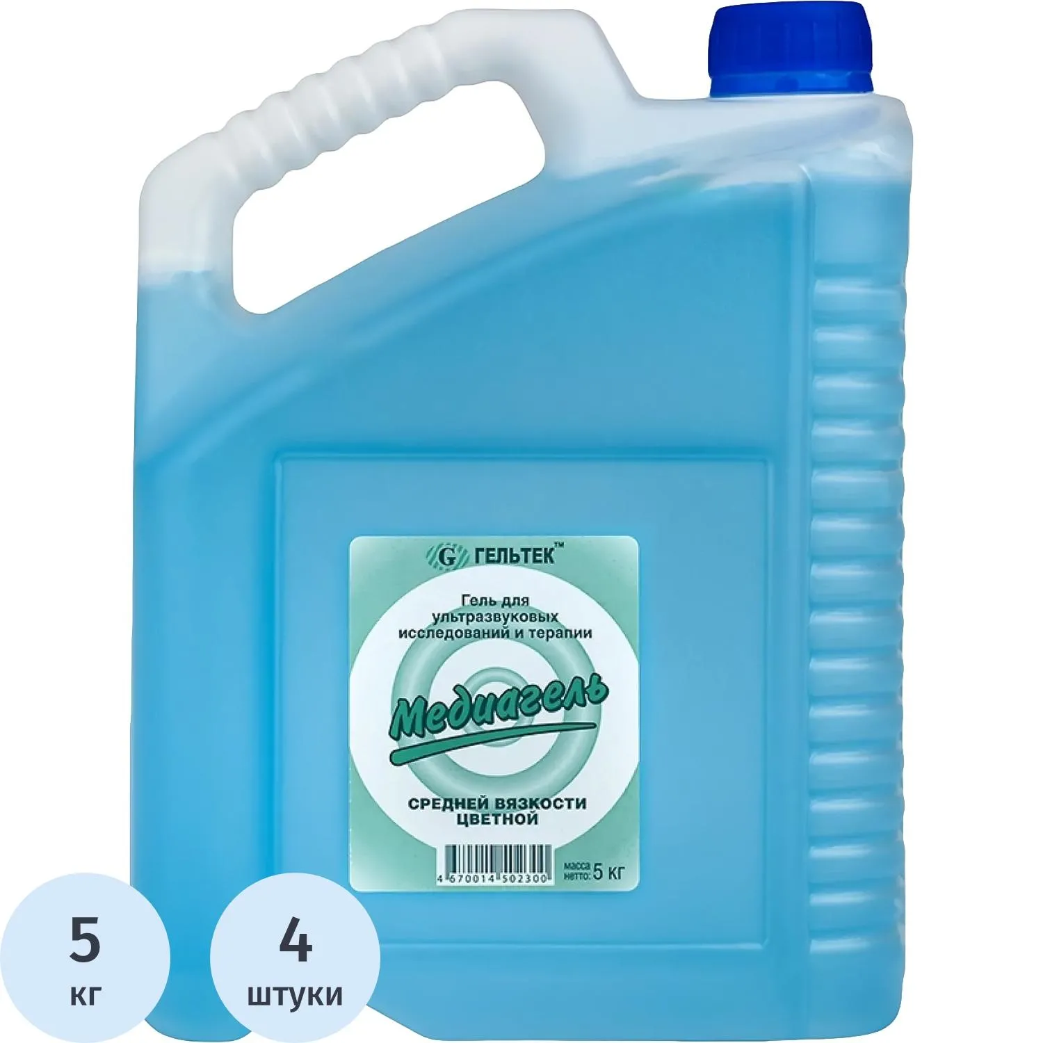 Гель для УЗИ МЕДИАГЕЛЬ 5кг/бут. средней вязкости (цв.) 4 шт/уп