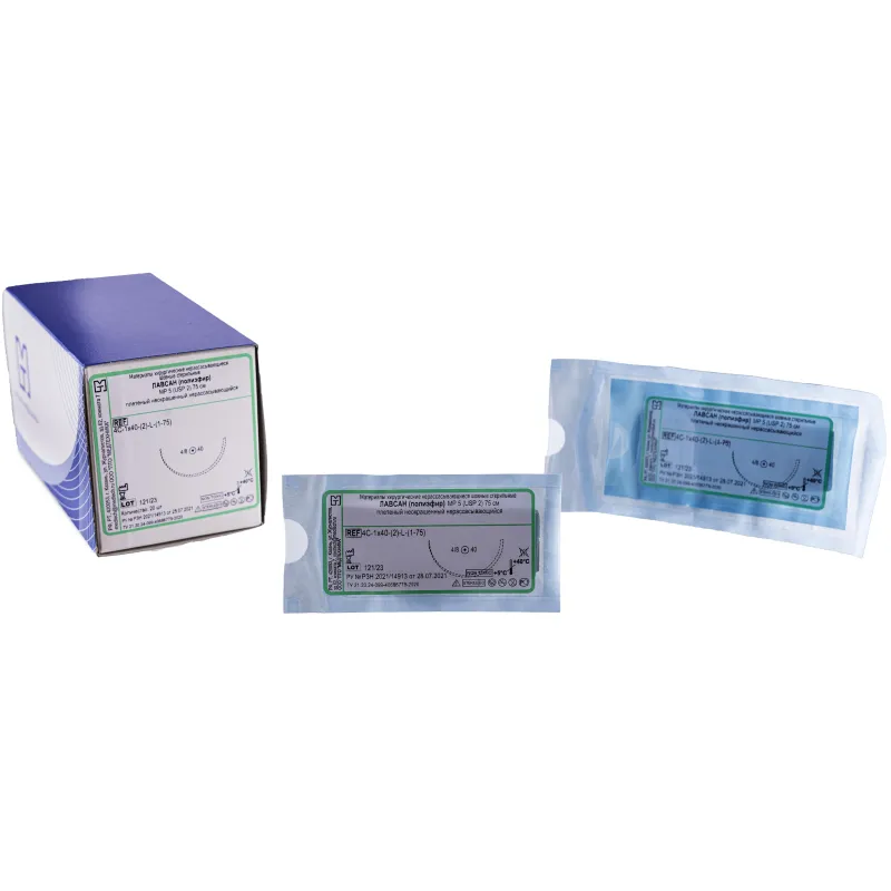 Шовный материал ЛАВСАН 2 МР 5 с иглой 4D-1,0x40-(2)-L-(1-75), 75см 20шт/у