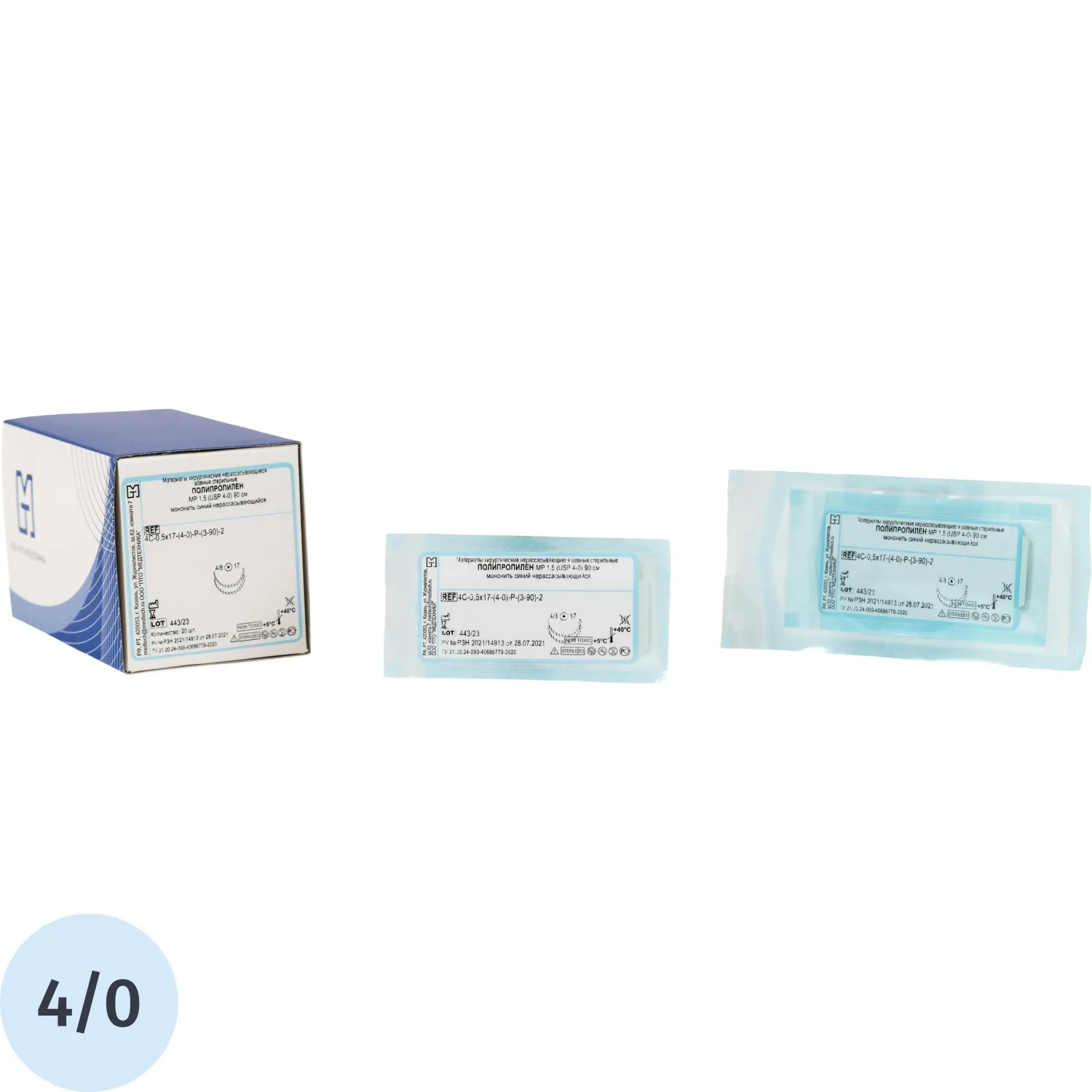 Шовный материал ПОЛИПРОПИЛЕН 4/0 MР 1,5 с 2 иглами 4C-0,5x17, 90см 20шт/уп