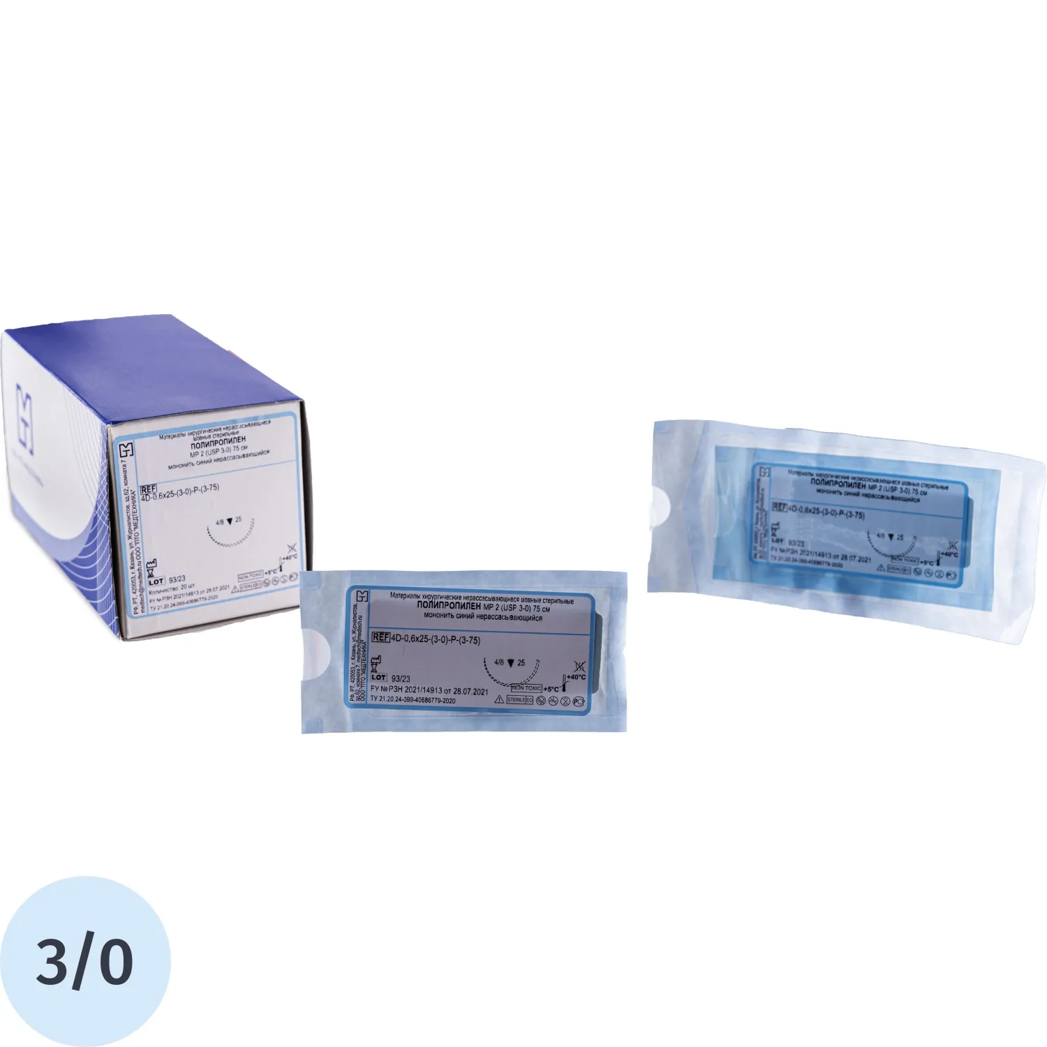 Шовный материал ПОЛИПРОПИЛЕН 3/0 МР 2 с иглой 4D-0,6x25 (3-75) 75см 20шт/у
