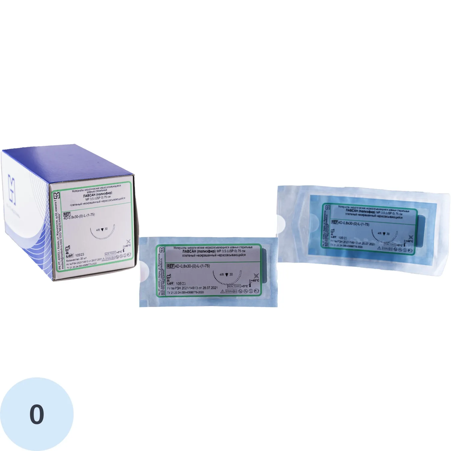 Шовный материал ЛАВСАН 0 МР 3,5 с иглой 4D-0,8x30-(0)-L-(1-75), 75см 20шт/у