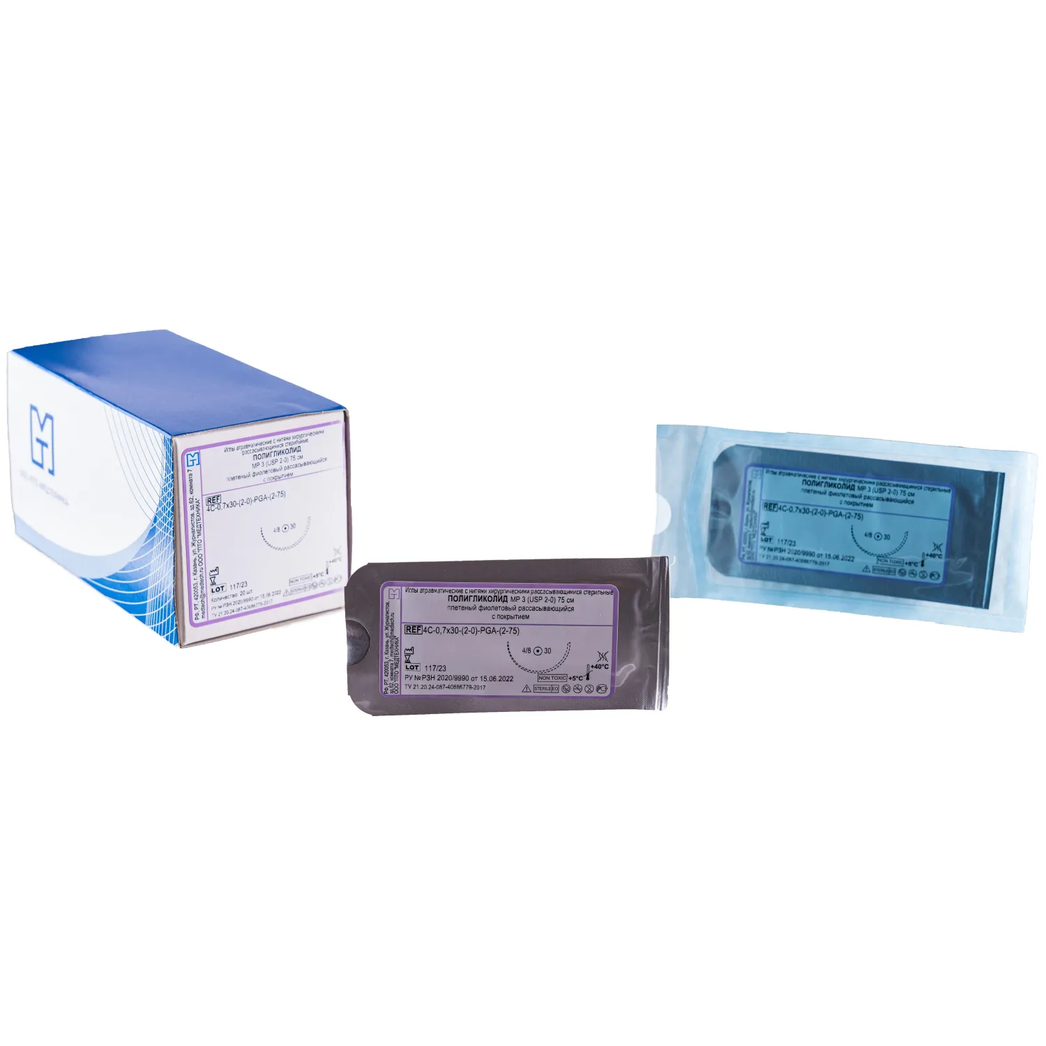 Шовный материал ПОЛИГЛИКОЛИД 2/0 МР 3,с игл 4С-0,7x30 (2-75)75см 20шт/у
