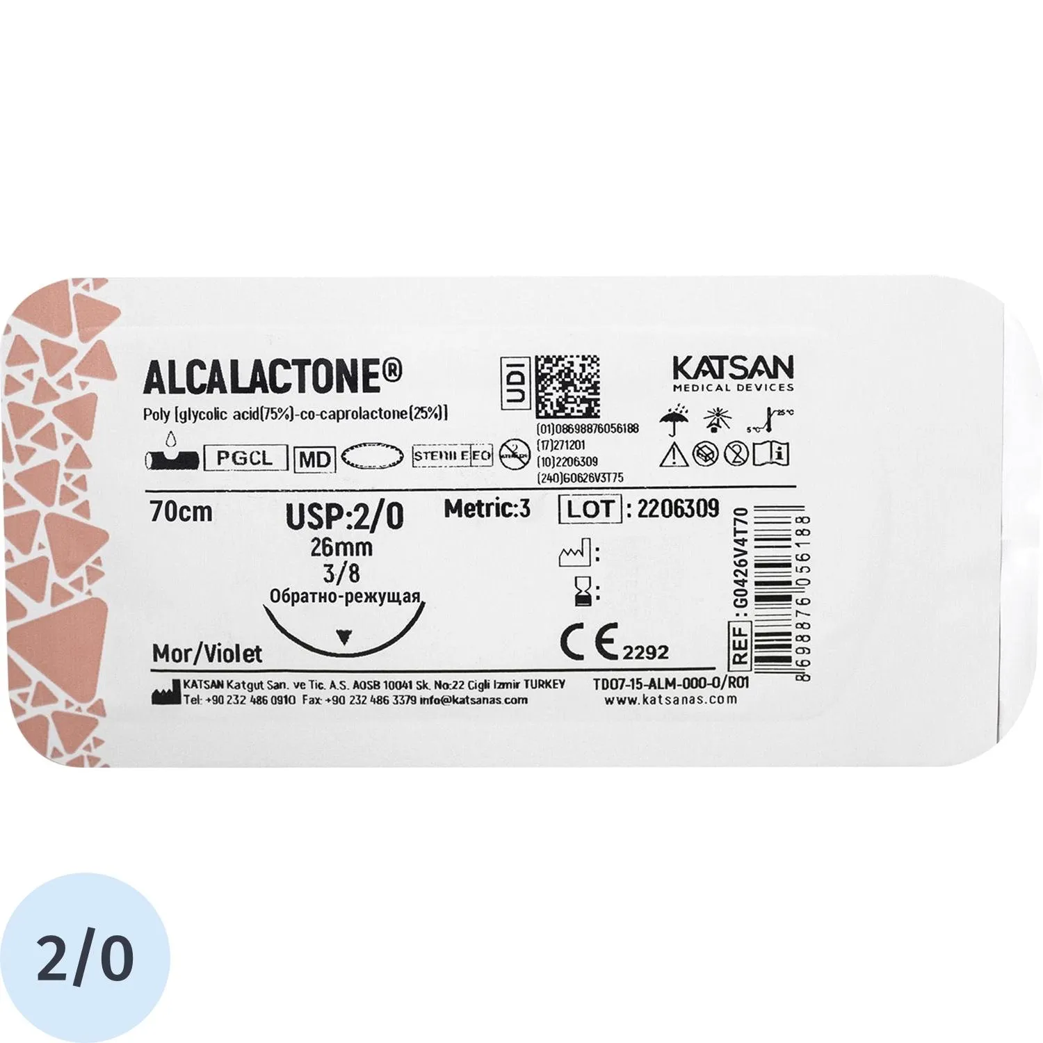 Шовный материал ALCALACTONE 2/0 26 3/8 REVERSE CUTTING обр-реж 70см уп/12шт