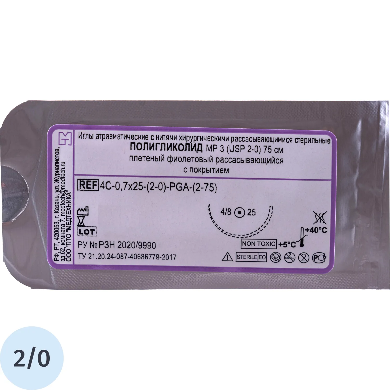 Шовный материал ПОЛИГЛИКОЛИД 2/0 МР 3 с игл 4C-0,7x25 (2-75)75см 20шт/у