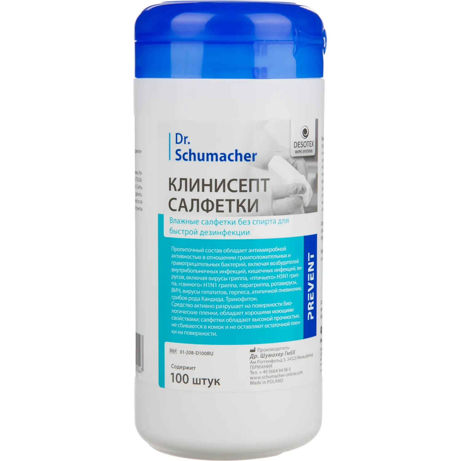 Салфетки дезинфицирующие Клинисепт 100шт/уп (размер 14х20 см)