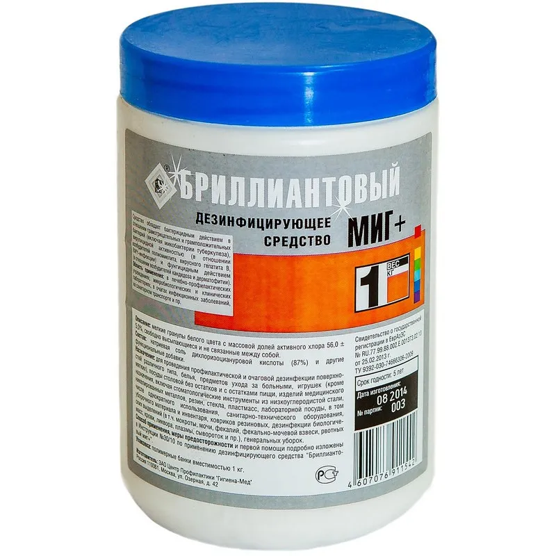 Дезинфицирующее средство хлор порошок Бриллиант. Миг Плюс 1,0кг УТ000001302