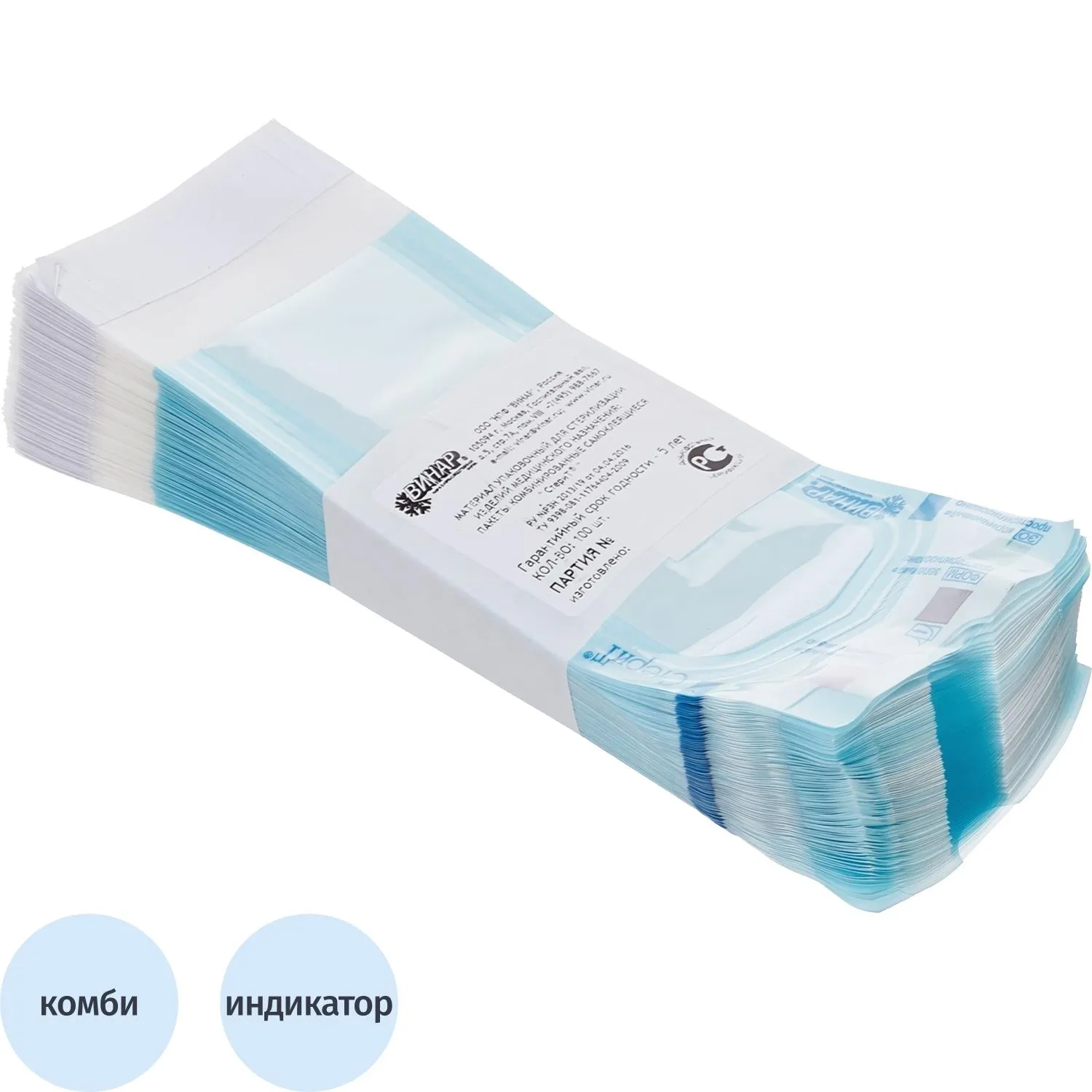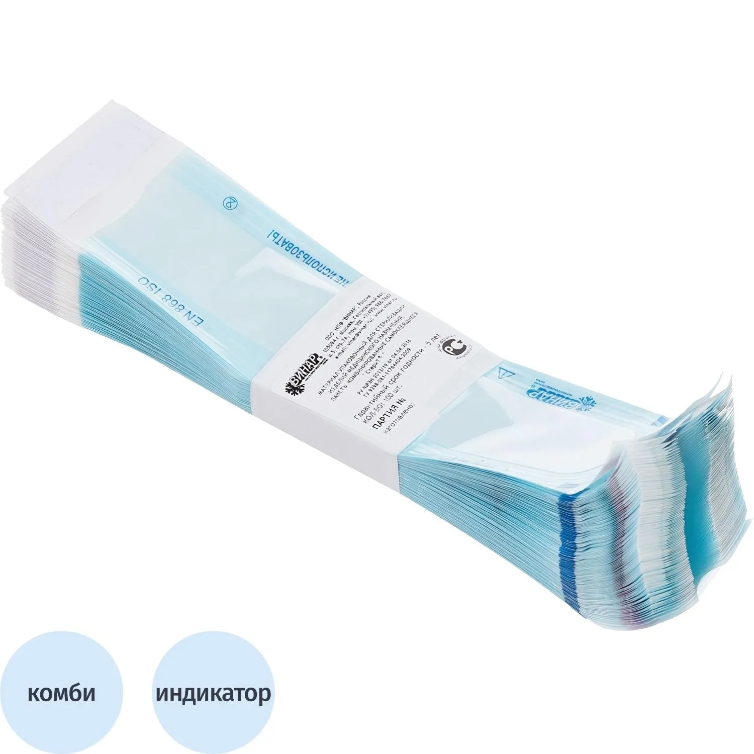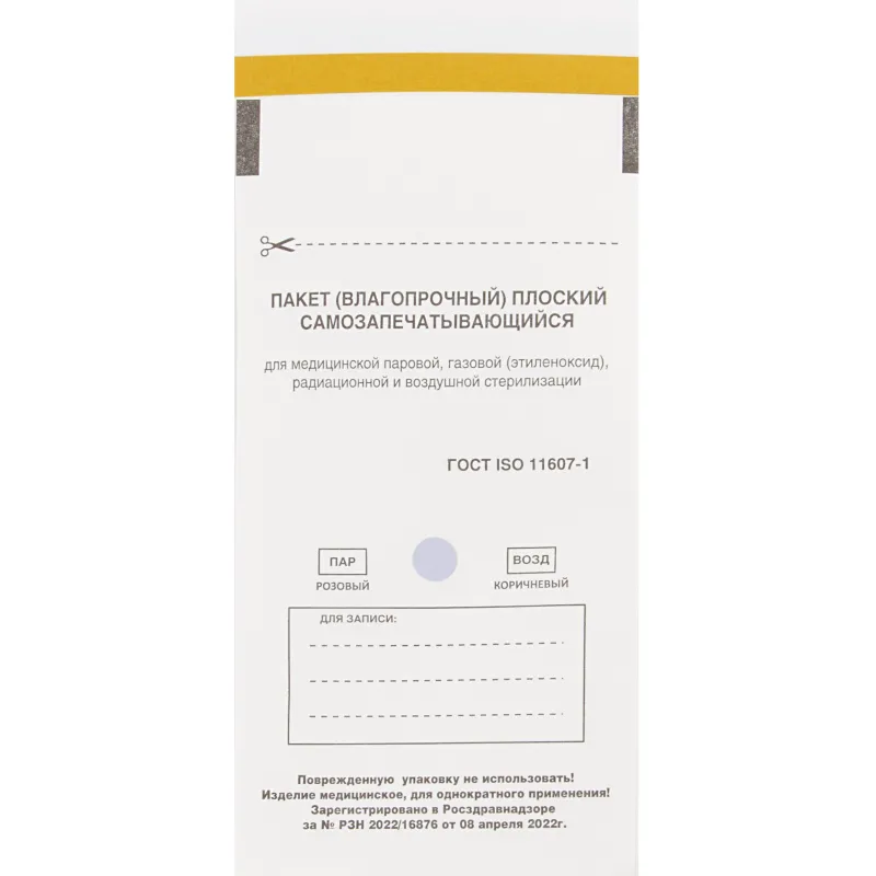 Пакет для стерилизации бум. 150 х 250 мм белый самокл. 100 шт/уп СтериТ