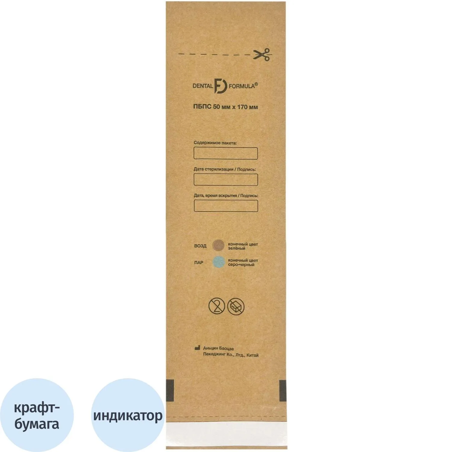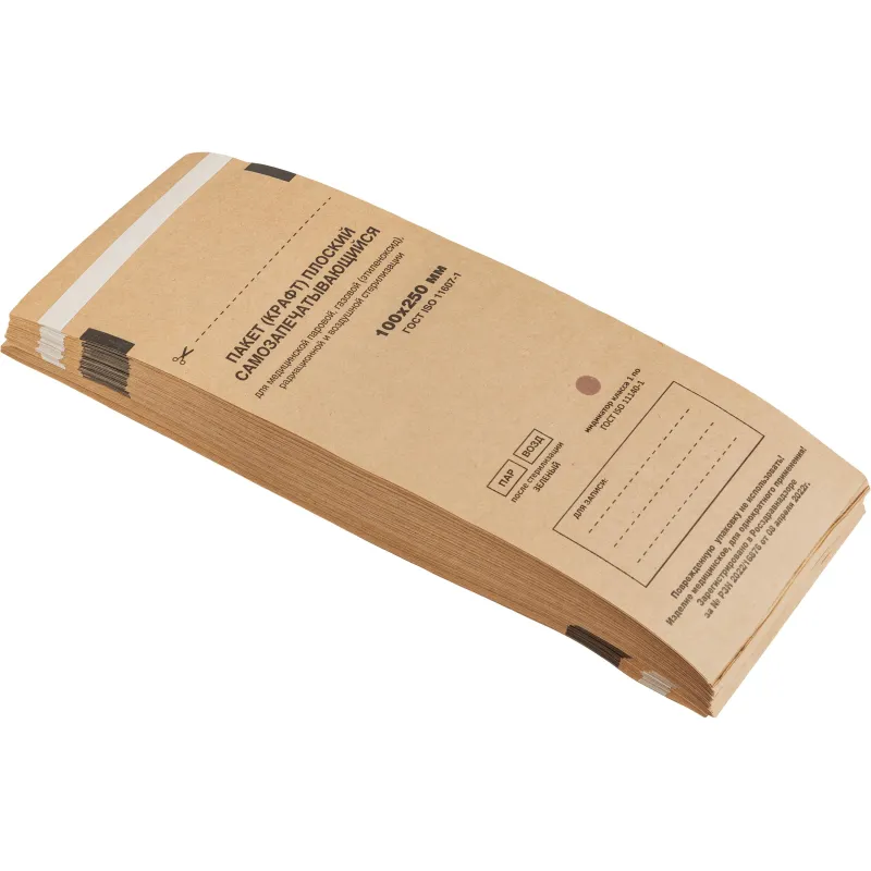 Пакет для стерилизации бум. 200 х 330мм крафт самокл. 100 шт/уп