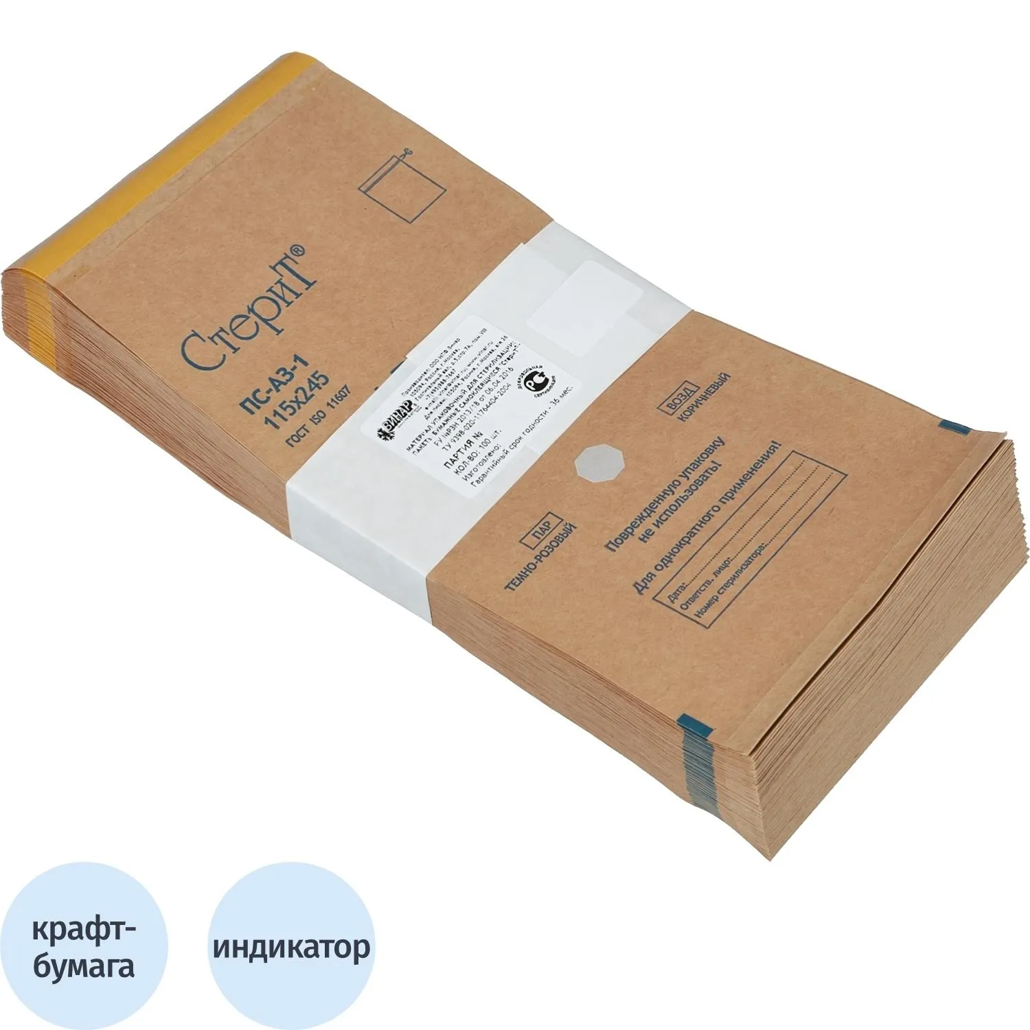 Крафт-пакет для стерилизации 115 х 245 мм самокл. 100 шт/уп СтериТ