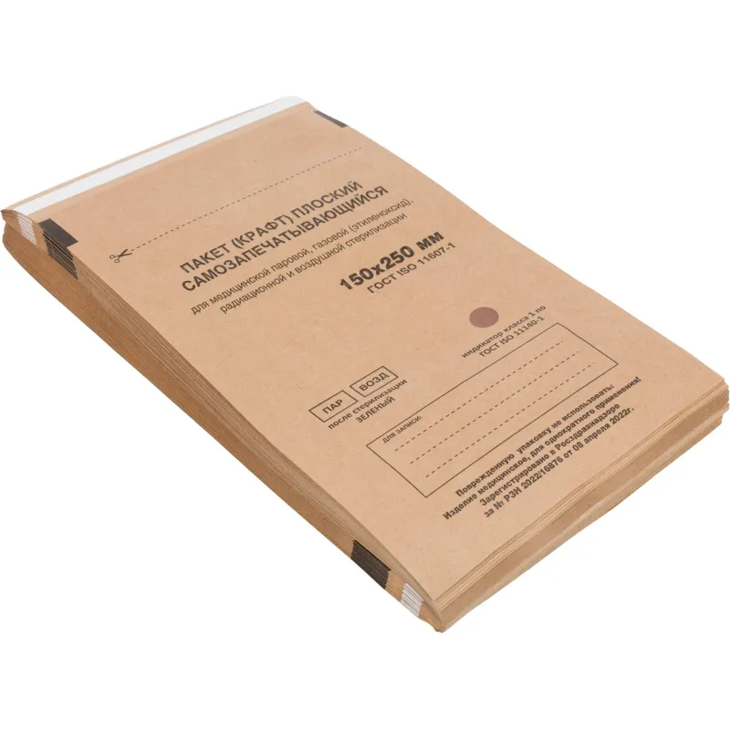 Пакет для стерилизации бум. 150 х 280 мм белый самокл. 100 шт/уп