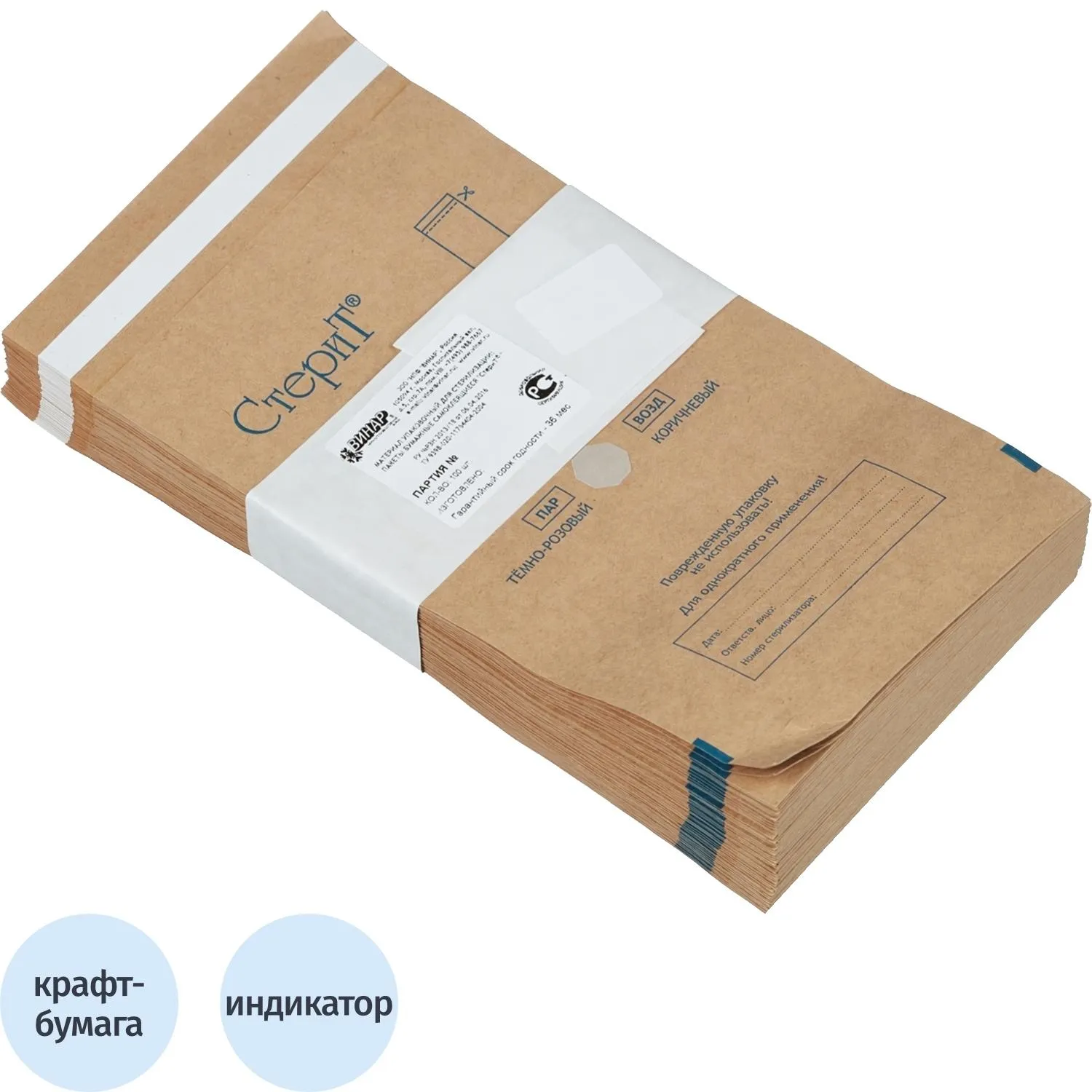 Пакет для стерилизации бум. 100 х 320 мм крафт самокл. 100 шт/уп СтериТ