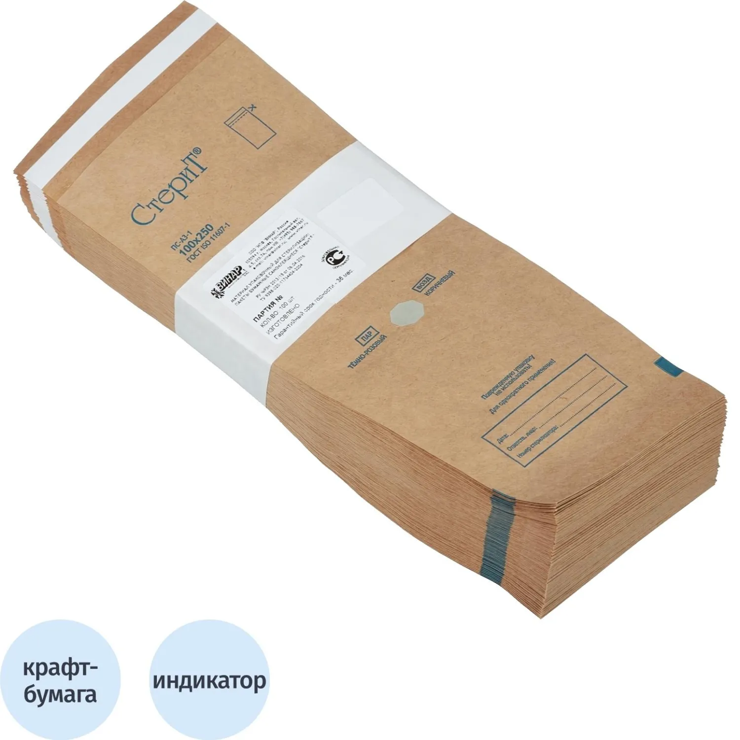 Крафт-пакет для стерилизации 100 х 250 мм самокл. 100 шт/уп СтериТ