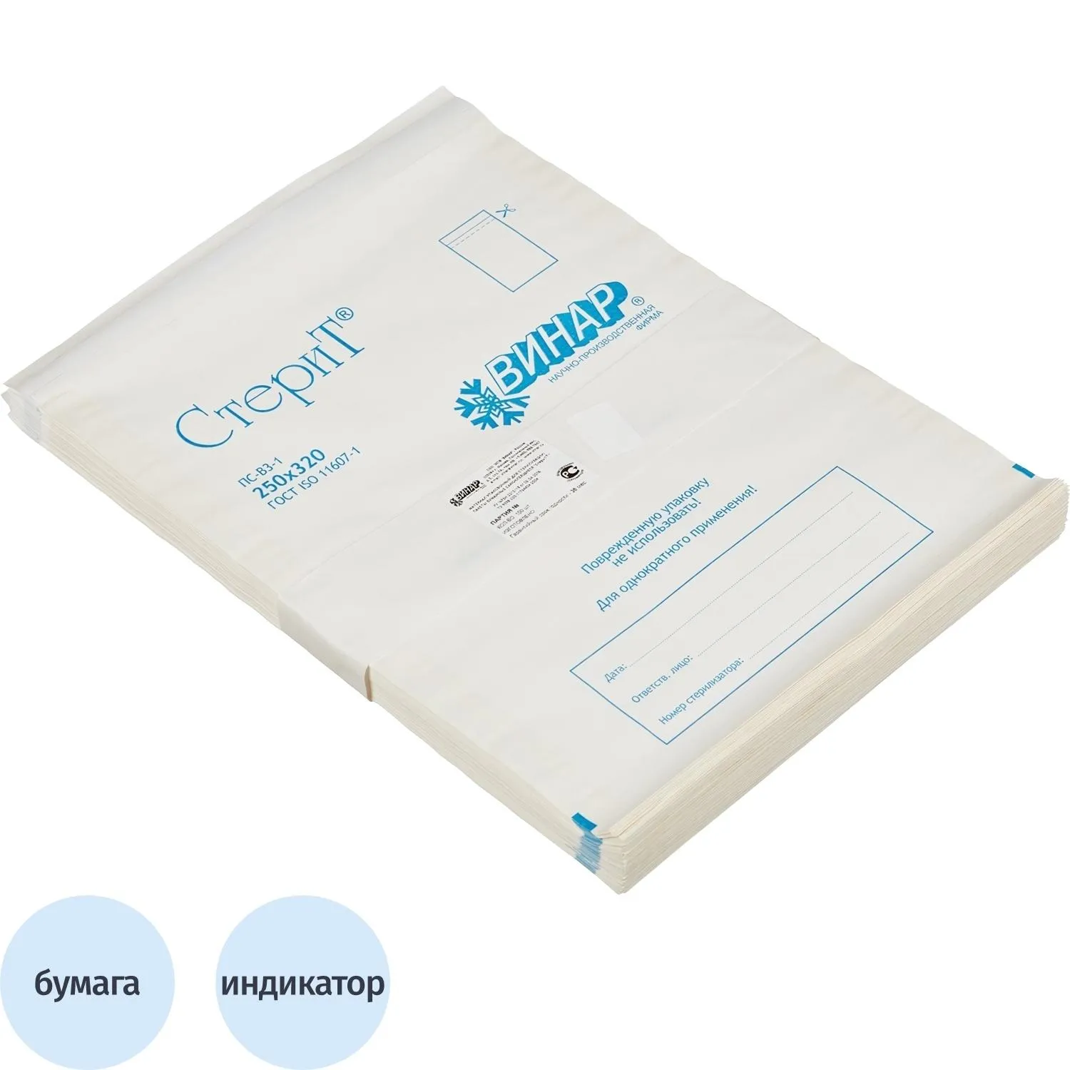 Пакет для стерилизации бум. 250 х 320 мм белый самокл. 100 шт/уп Клинипак