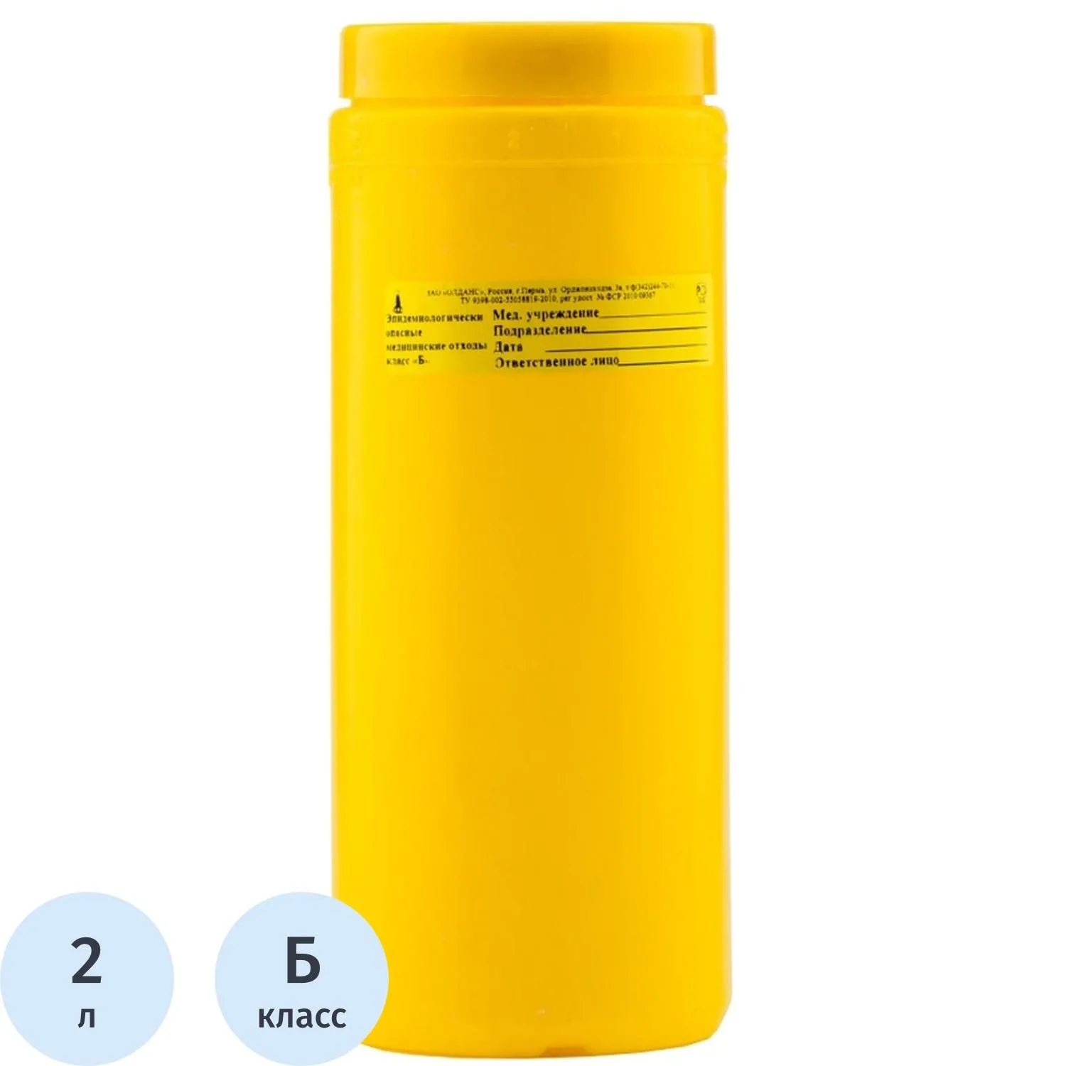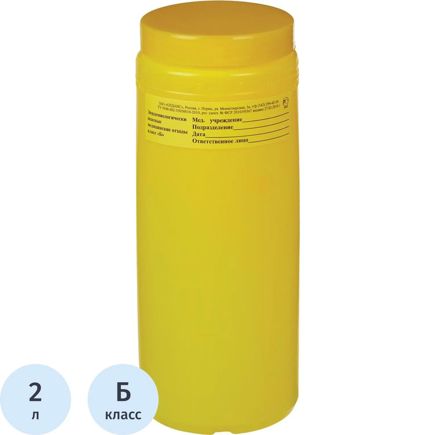 Емкость-контейнер д/сбора ост.инстр.с иглосъем.Б Жел. 2л, 35шт/уп, ОЛДАНС