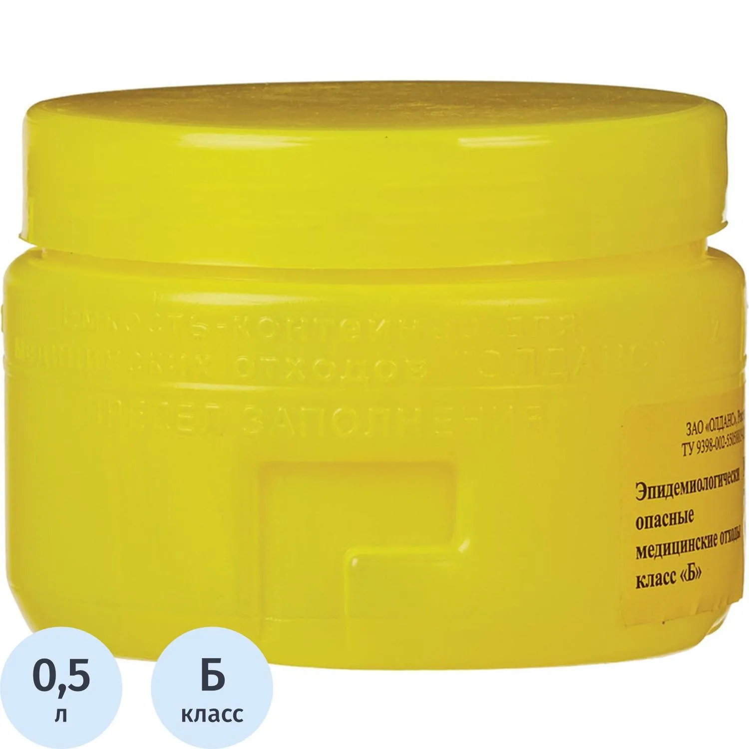 Емкость-контейнер д/сбора ост.инстр.с иглосъем.Б Жел.0,5л, 100шт/уп, ОЛДАНС