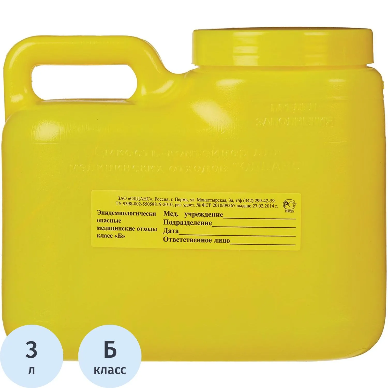 Емкость-контейнер д/сбора ост.инстр.с иглосъем.Б Жел. 3л, 24шт/уп, ОЛДАНС