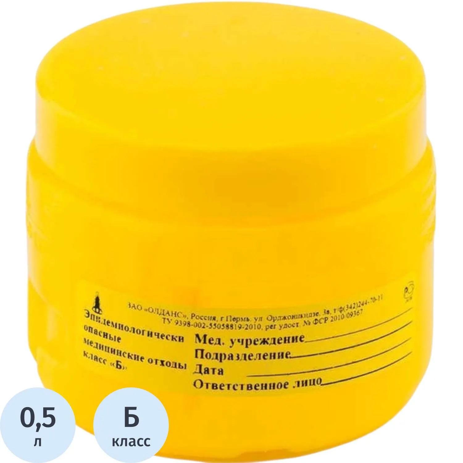 Емкость-контейнер для биолог.отходов класс Б, 0,5л, 100шт/уп, ОЛДАНС