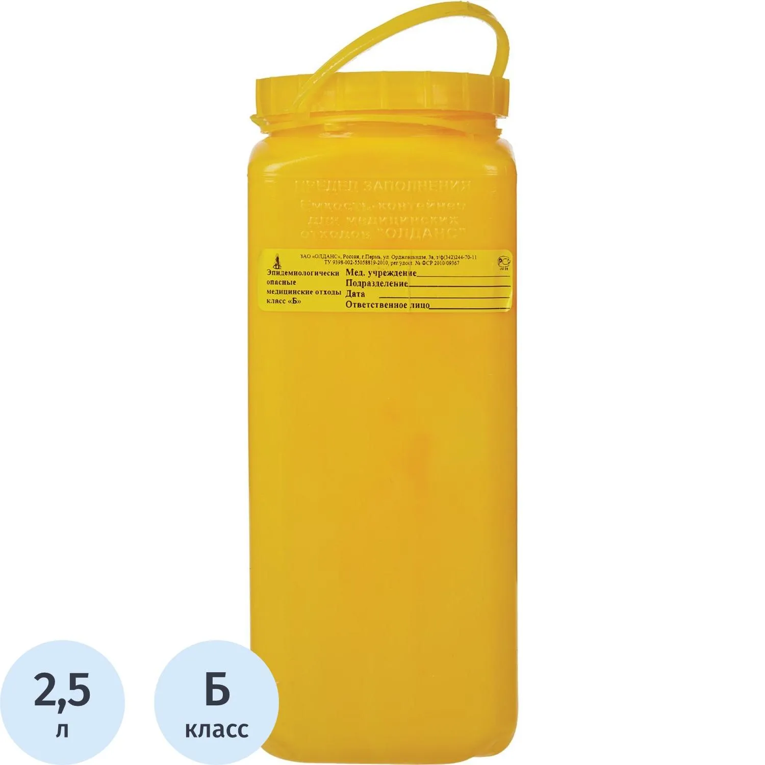 Емкость-контейнер д/сбора ост.инстр.с иглосъем.Б Жел. 2,5л, 35шт/уп, ОЛДАНС