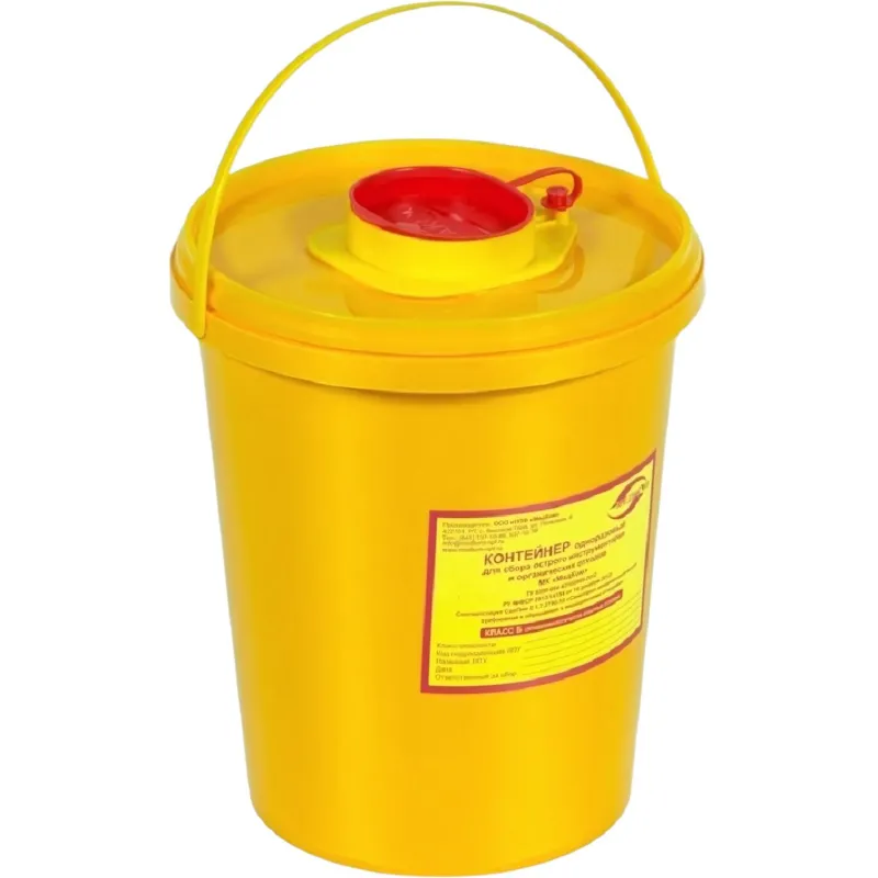 Емкость-контейнер д/сбора ост.инстр.с иглосъем.Б Жел. 5л, 16шт/уп, ОЛДАНС
