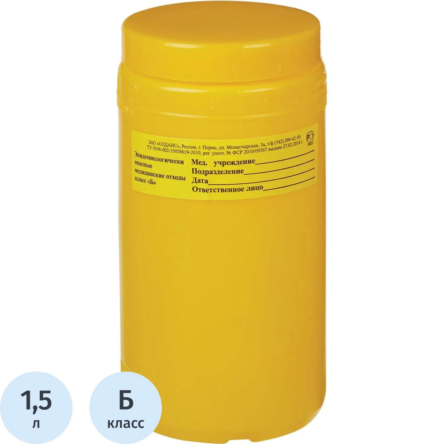 Емкость-контейнер д/сбора ост.инстр.с иглосъем.Б Жел. 1,5л, 40шт/уп, ОЛДАНС