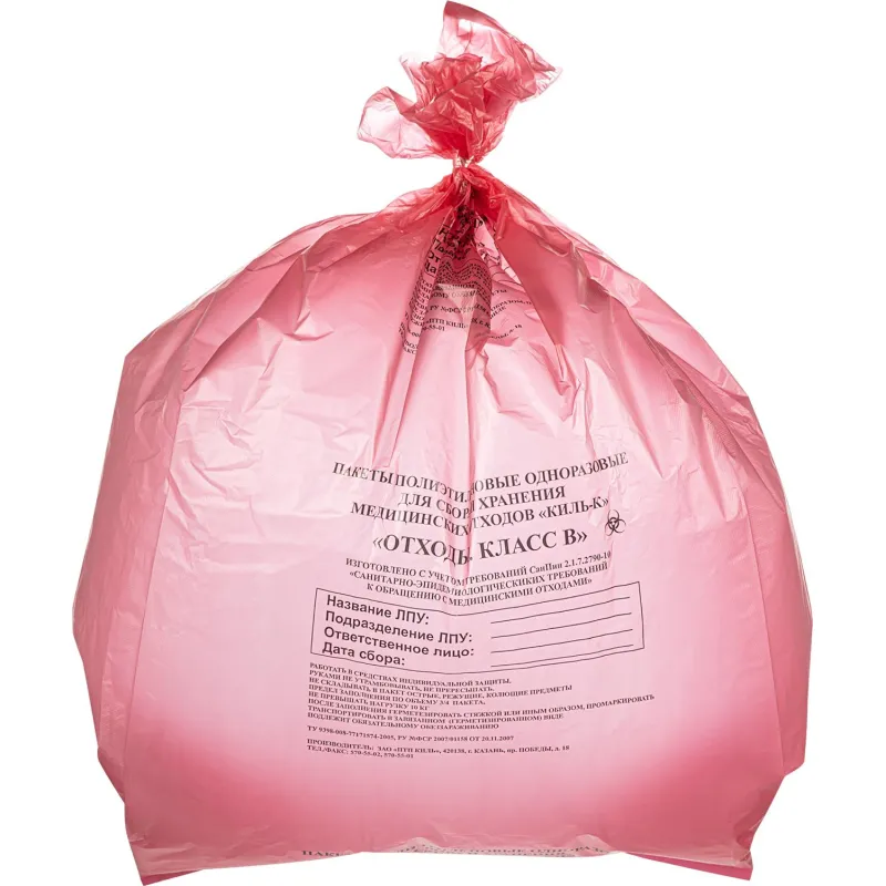 Пакет для мед.отходов кл.В красный 700х1100х18мкм, 120л, 100 шт/уп, Респект