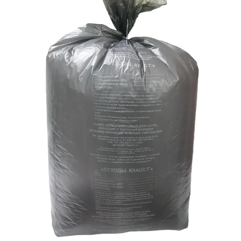 Пакет для мед.отходов кл.Г черный 700х1100х18мкм, 120л, 100 шт/уп, Респект