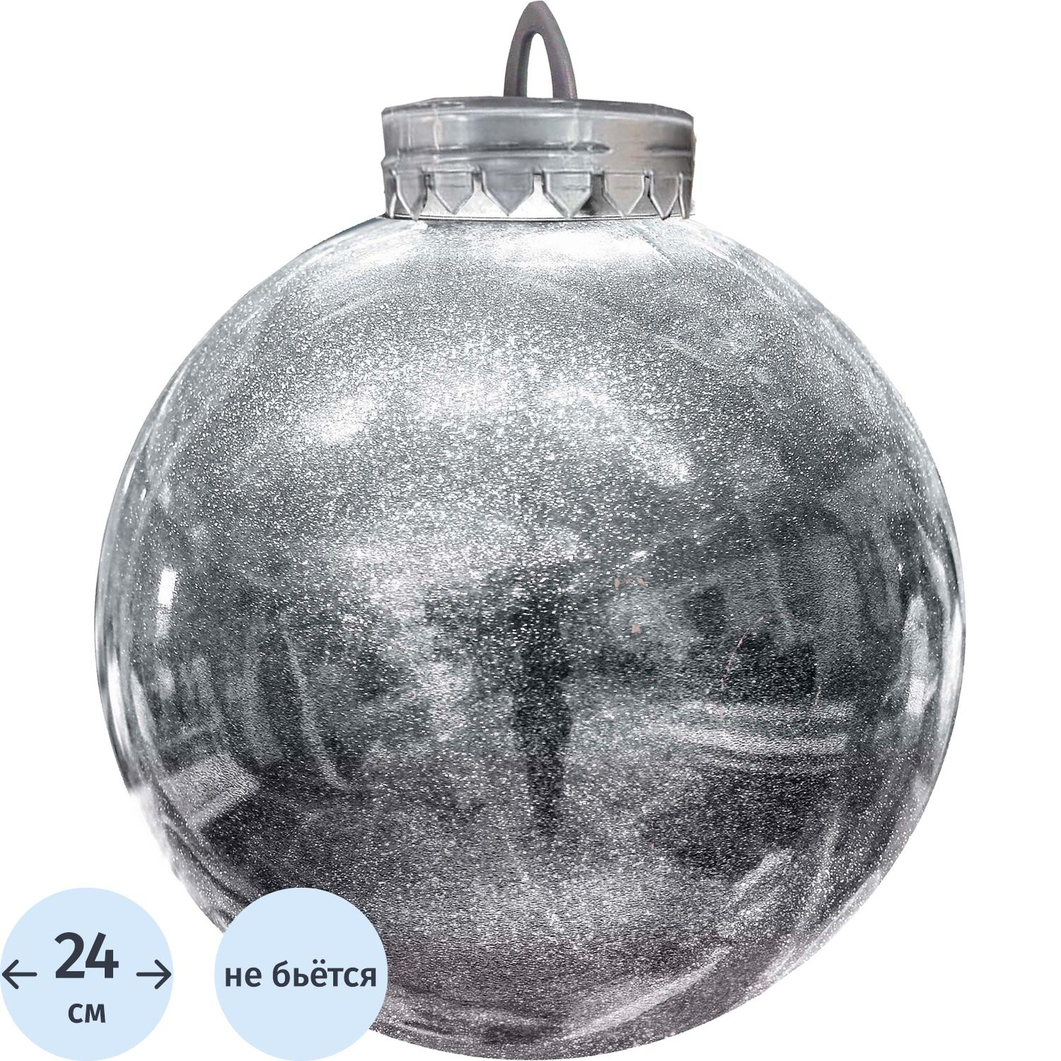 Шар 240мм, с глиттером лакированный (серебряный), 513457