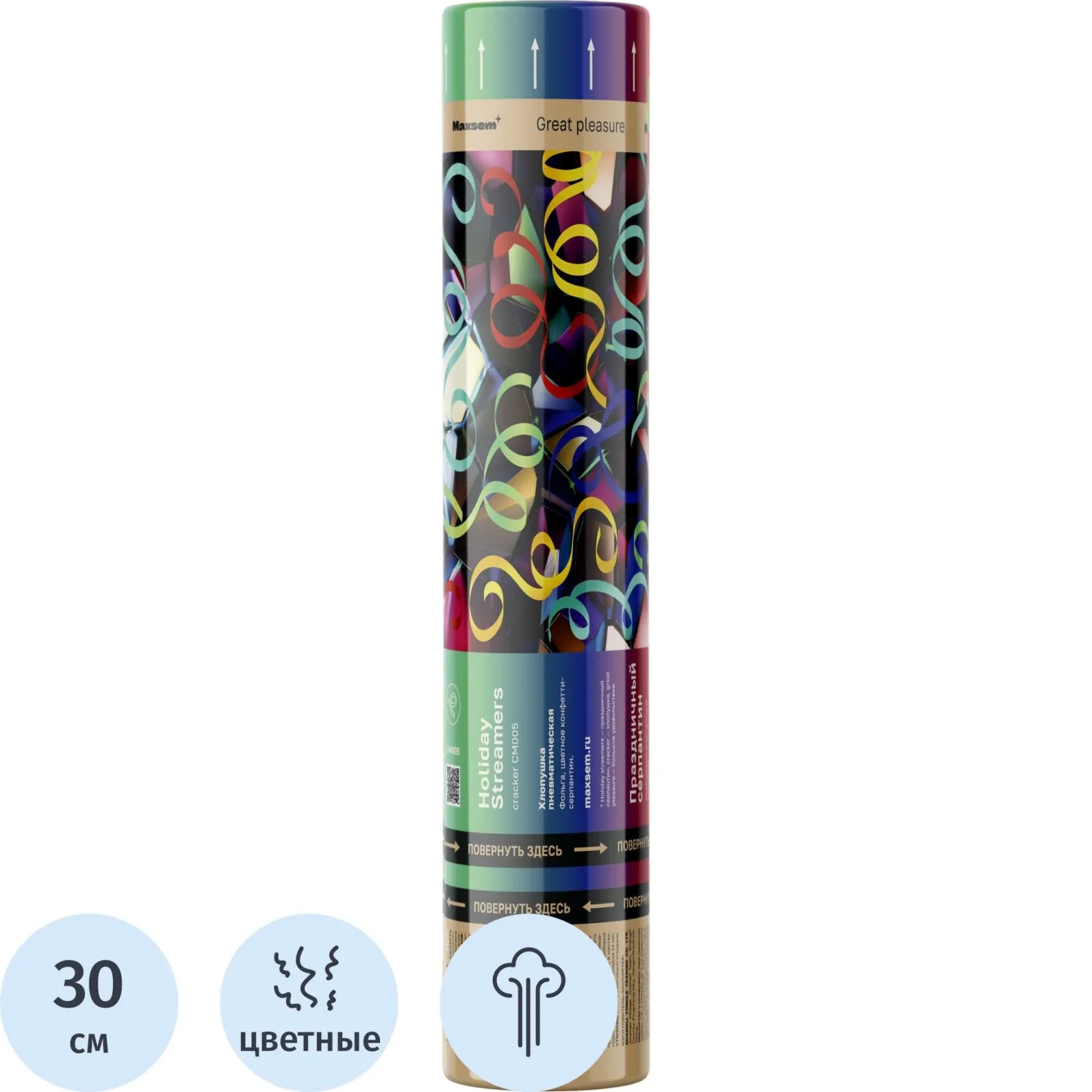 Хлопушка пневматическая 30см конфетти-серпантин из фольг разноцветный CM005