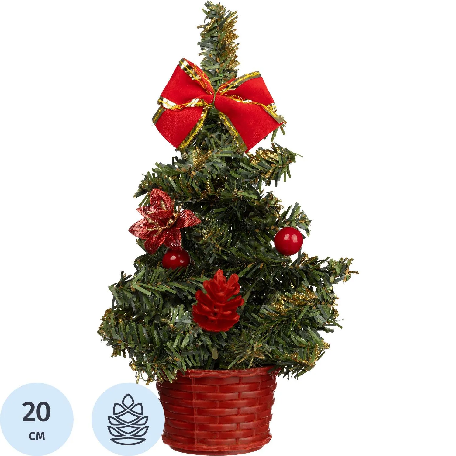 Елка настольная, с декором, красный L12 W12 H20 см 237274