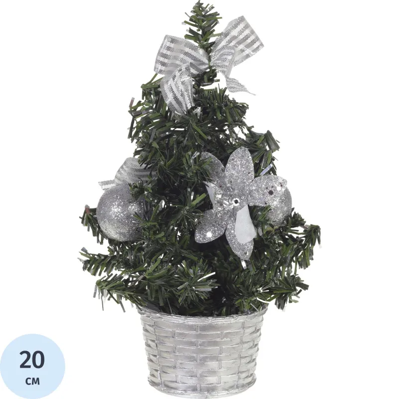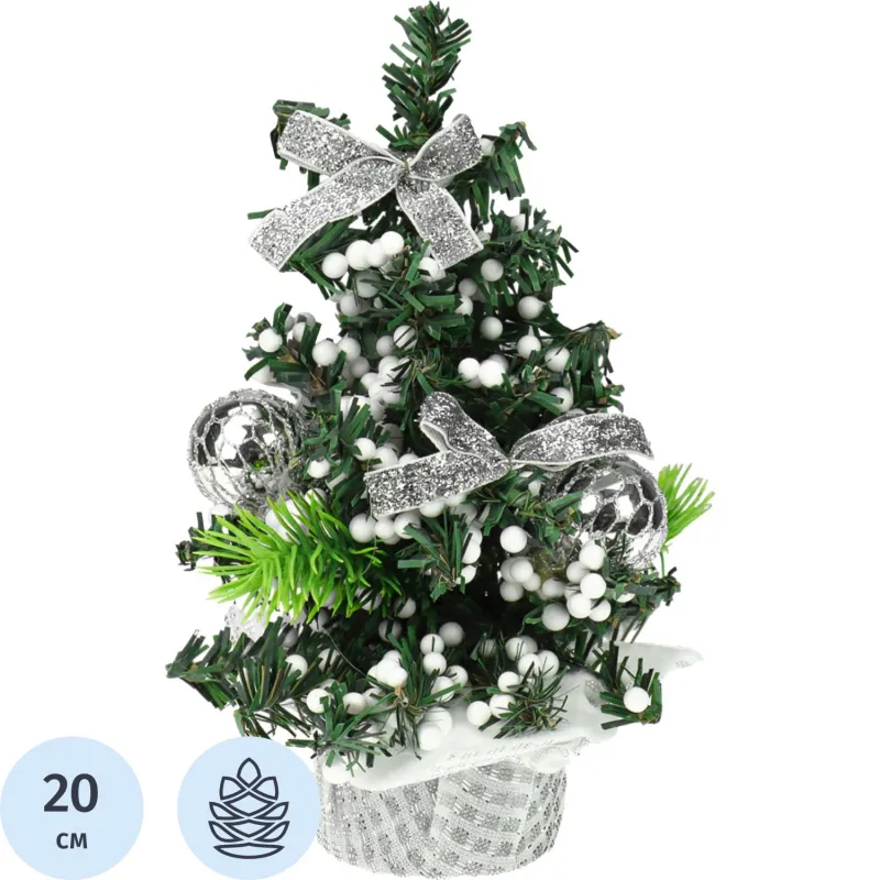 Елка Декоративная с серебряным декором на подставке, 20 см НУ-5663