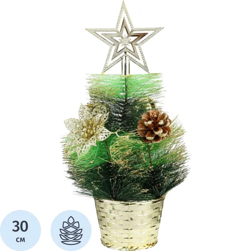 Елка Декоративная с золотым декором в горшке, 30 см Т-4391