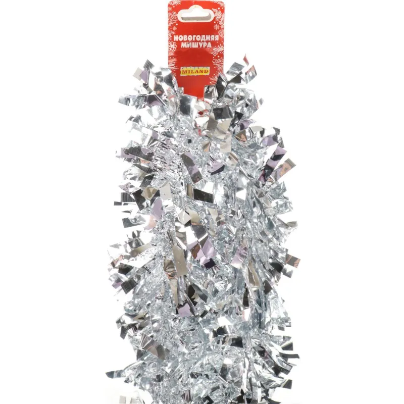 Мишура серебряная Новогодняя, длина 2 м, диаметр 7 см НУ-5483