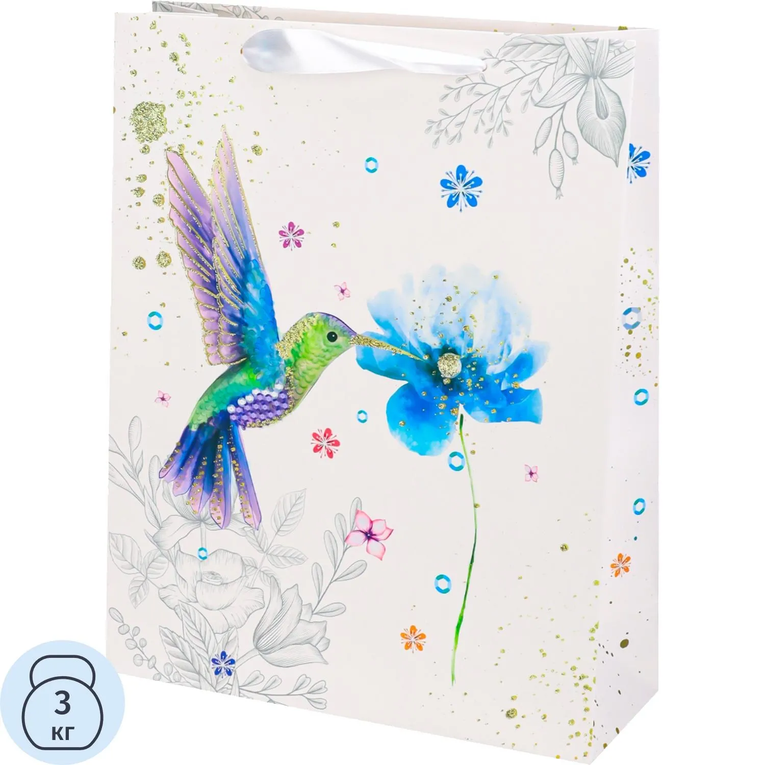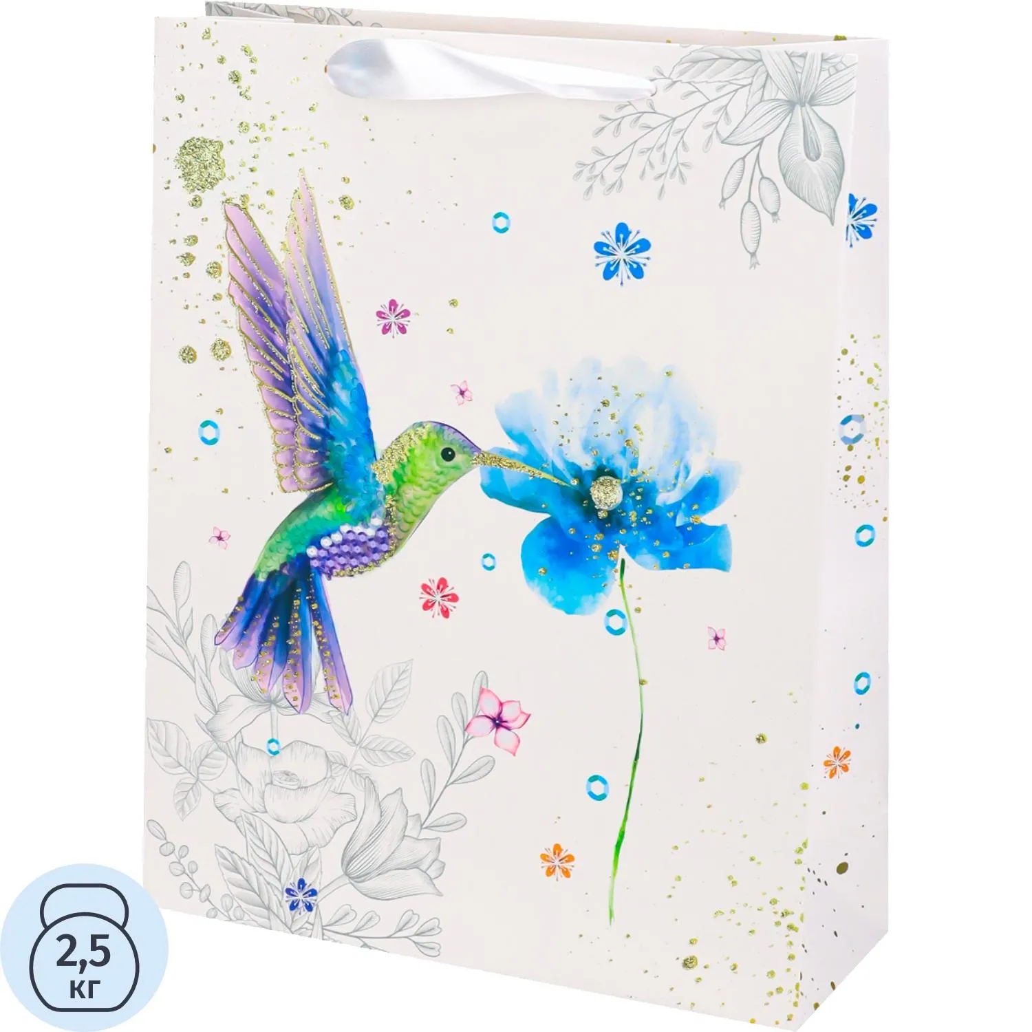 Пакет подар. с мат.лам.и глит.26x32x10см(L),Колибри с цветком,210г ППК-3695