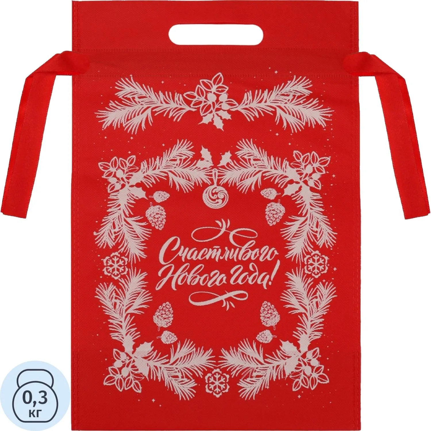 Мешочек для подарков Еловое настроение, 36x24x12см, красный, НУ-6246