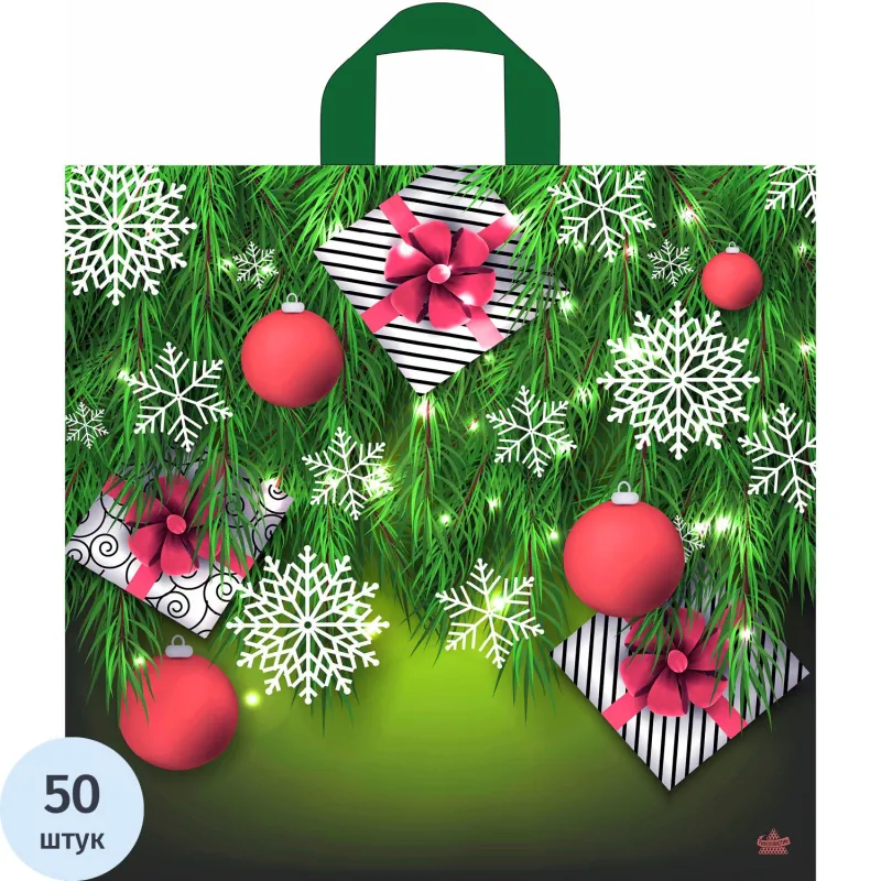 Пакет подарочный пластиковый Под. В елках 42х44 НГ(50шт в уп) арт.н00186561