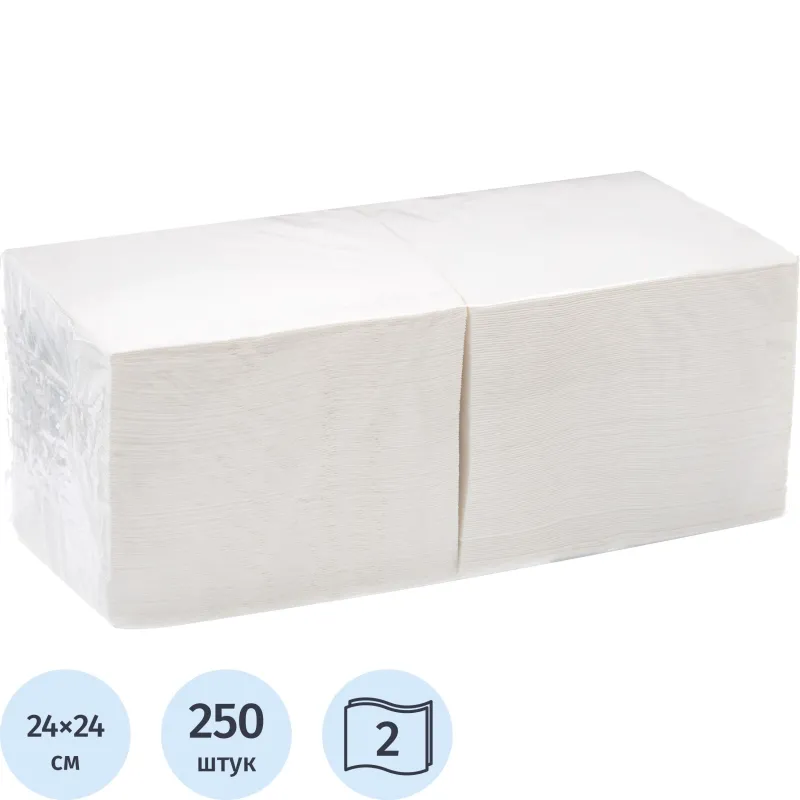 Салфетки бумажные 24х24см белые целл 2сл 250шт/уп
