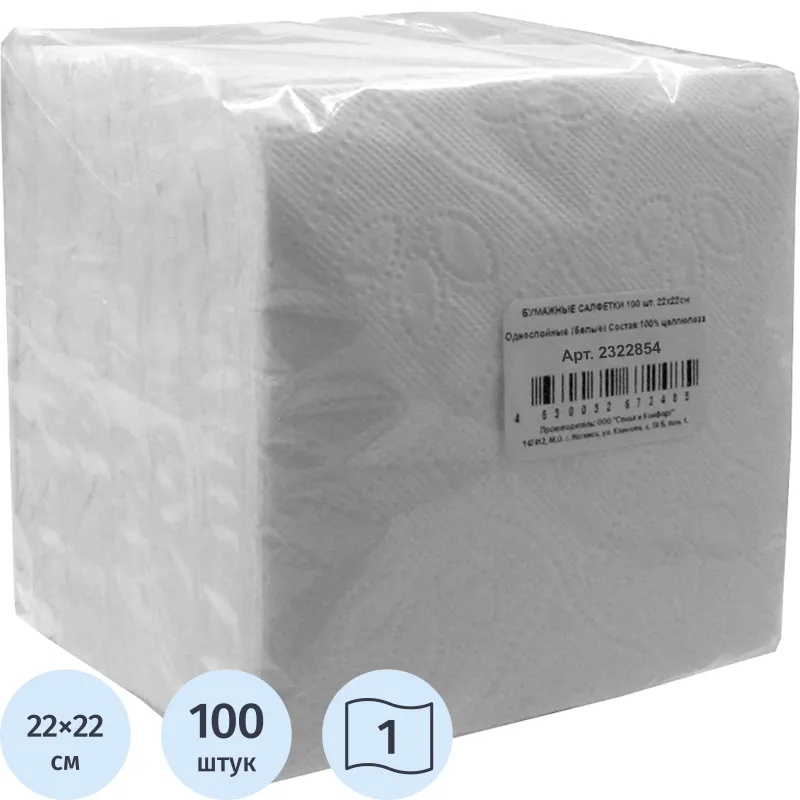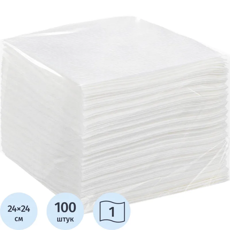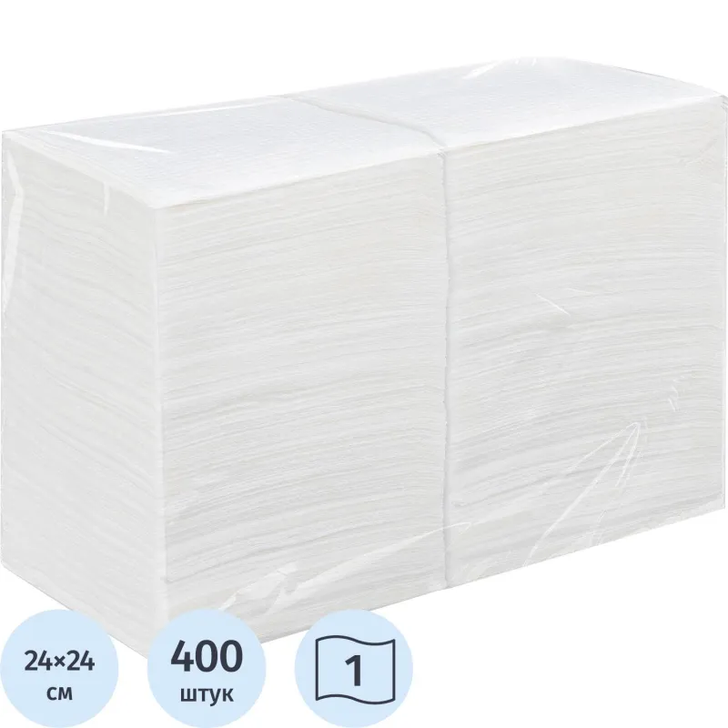 Салфетки бумажные целлюлоза белые 1сл 24х24см 400л/уп