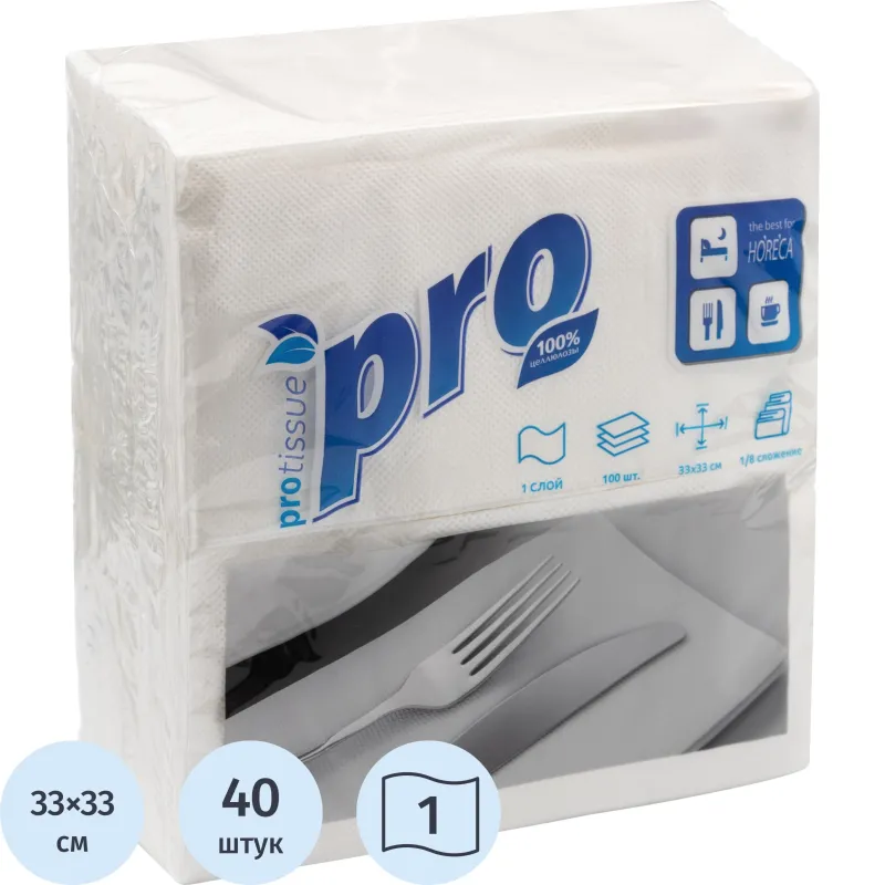 Салфетки бумажные Protissue 1сл 33х33 белые 100шт в уп С232