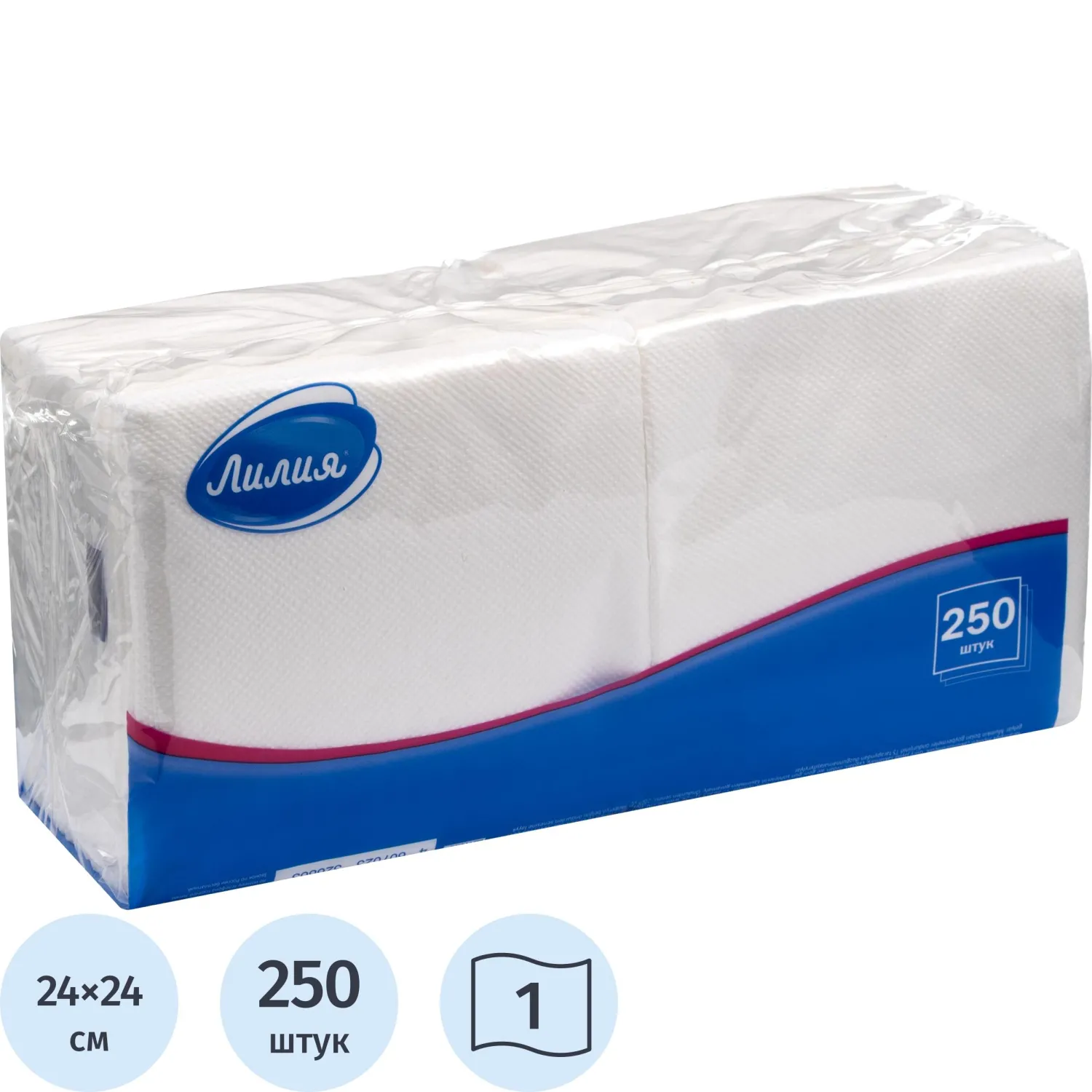 Салфетки бумажные Лилия белые 24х24 1сл 250шт/уп