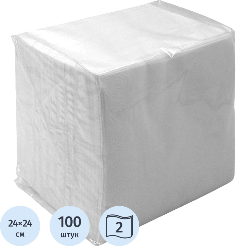 Салфетки бумажные Soffione белые 24х24см 2сл 100шт/уп