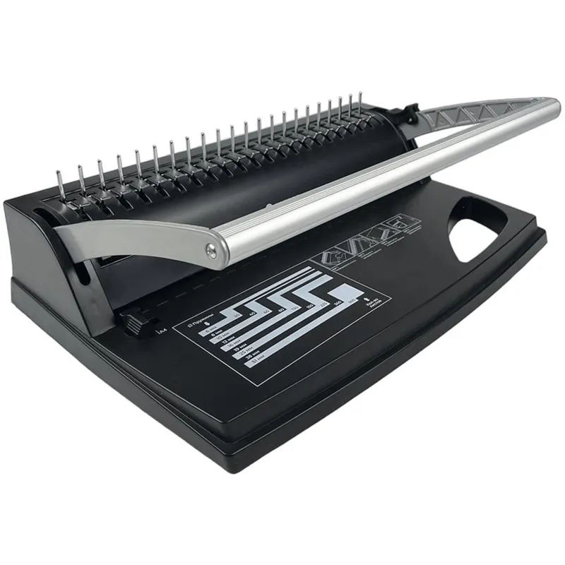 Машина для брошюровки обеспечивает скрепление нескольких листов бумаги (от пары штук до нескольких сотен) с помощью металлических/пластиковых пружин или посредством специальных термопапок с клеевой основой.