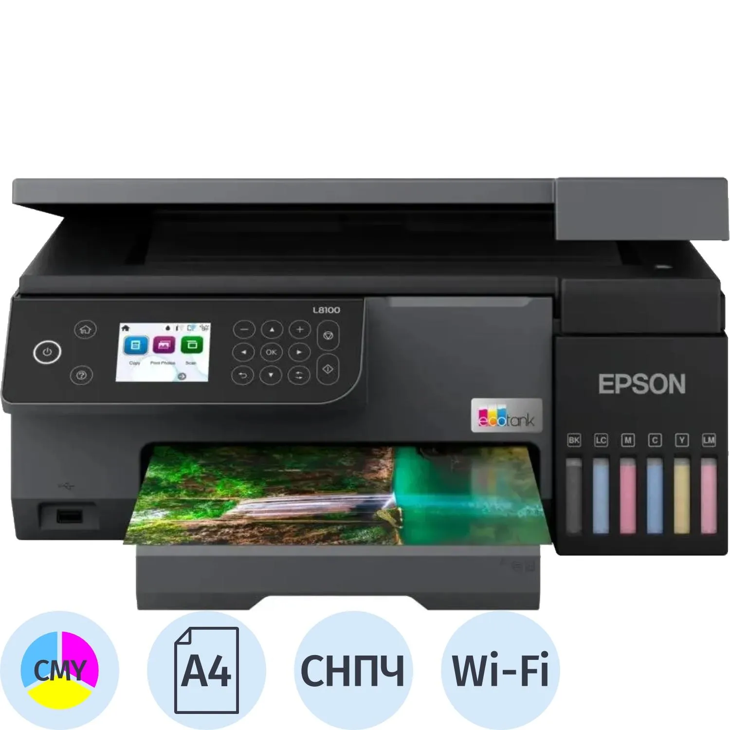 МФУ струйный Epson EcoTank L8100 (C11CK94402/C11CK94503), A4/WiFi/черный
