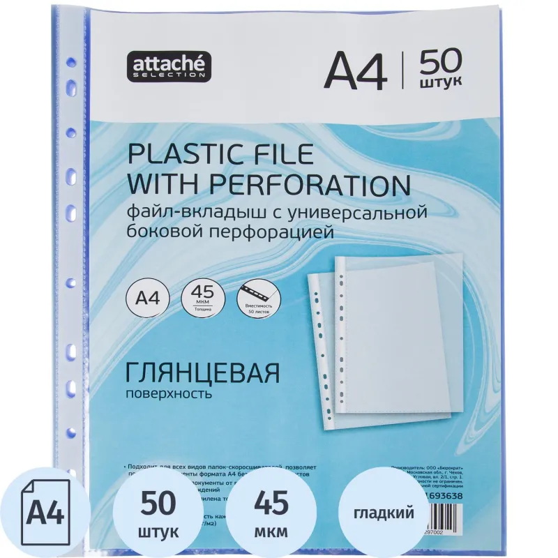 Файл-вкладыш ЭКО А4+ Attache Selection 100 мкм 20шт./уп