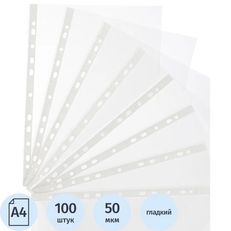 Файл-вкладыш А4+, 45мкм, Комус, 100шт/уп, гладкий
