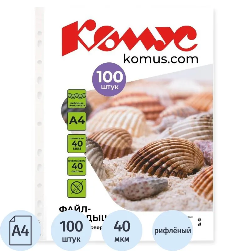 Файл-вкладыш А4, 40мкм Комус 100шт/уп, рифленый